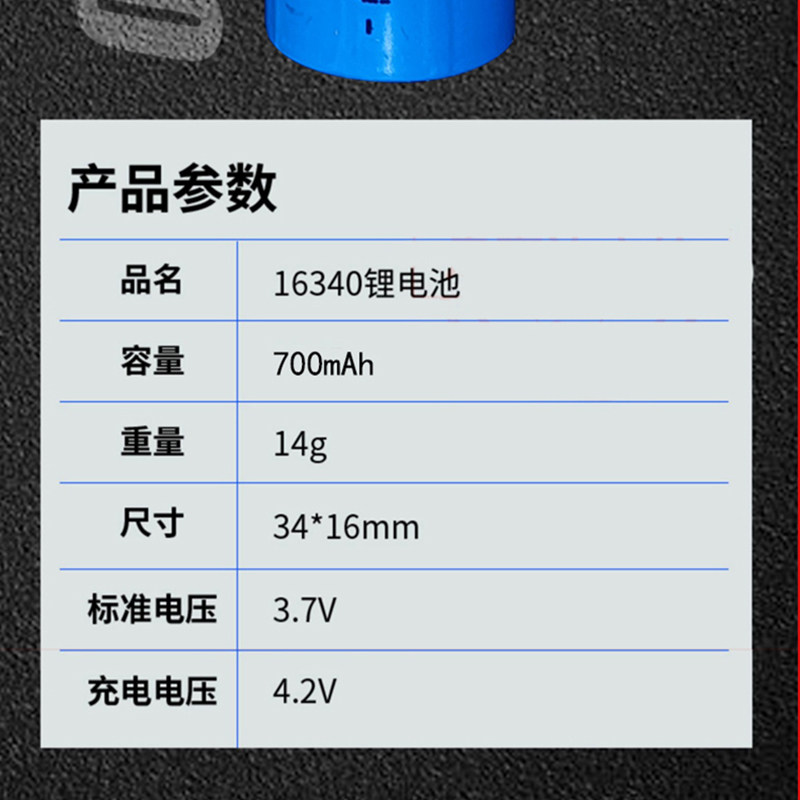 16340锂电池可充电700mAh真容量
