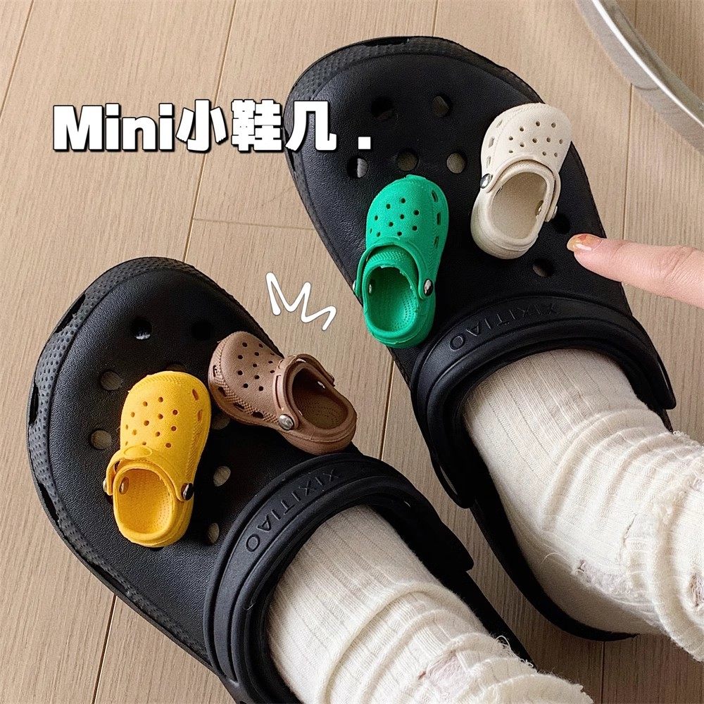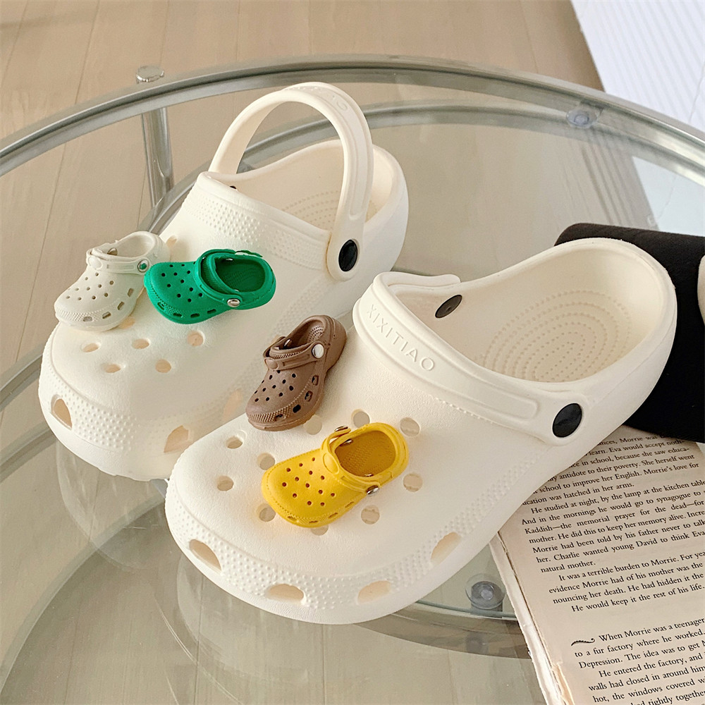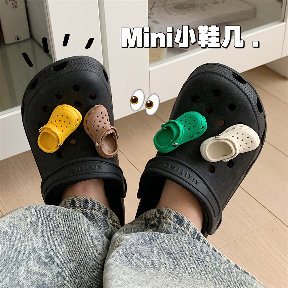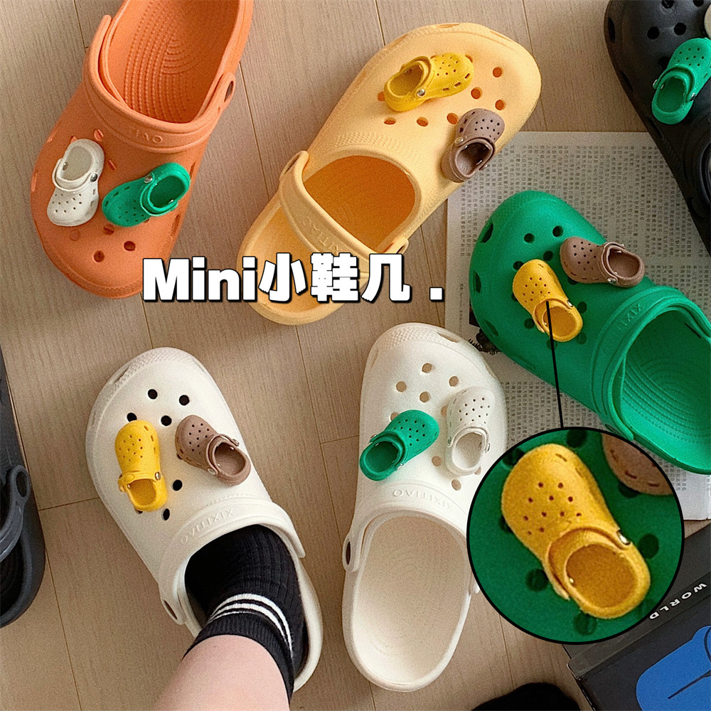 情侣街头风时尚百搭沙滩凉拖鞋创意立体迷你拖鞋装饰洞洞鞋男女夏