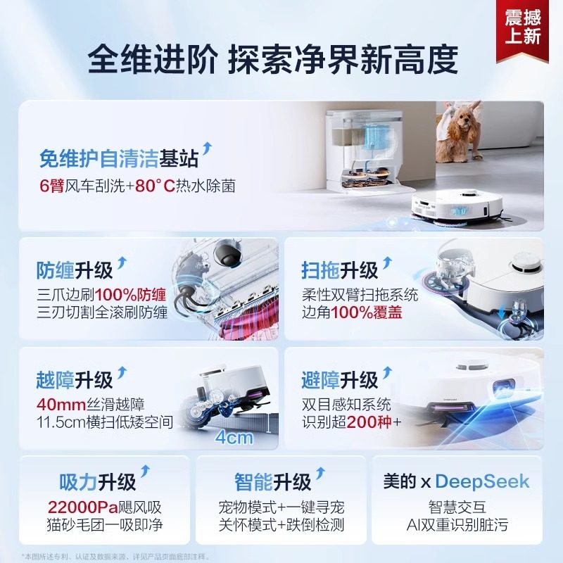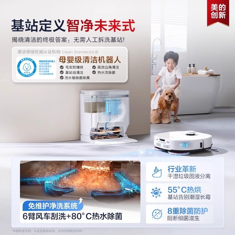 美的V16 Pro灵眸扫地机器人上下水版扫拖吸一体机防缠绕自清洁