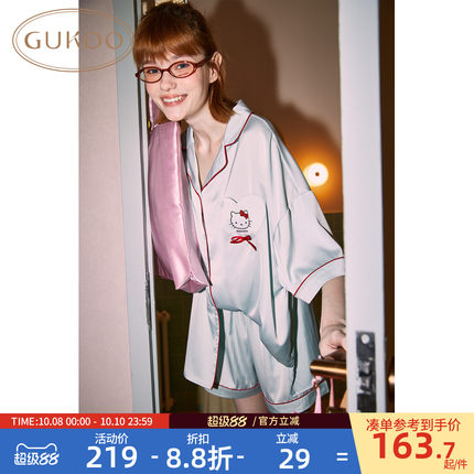 Gukoo/果壳睡衣女夏季helloKitty联名新款简约冰丝女家居服套装B