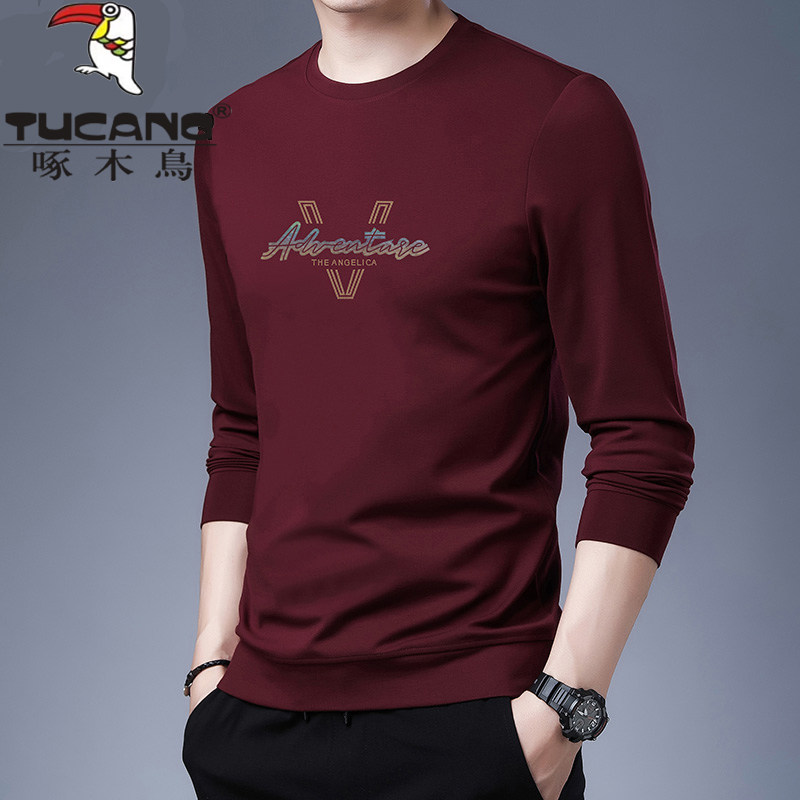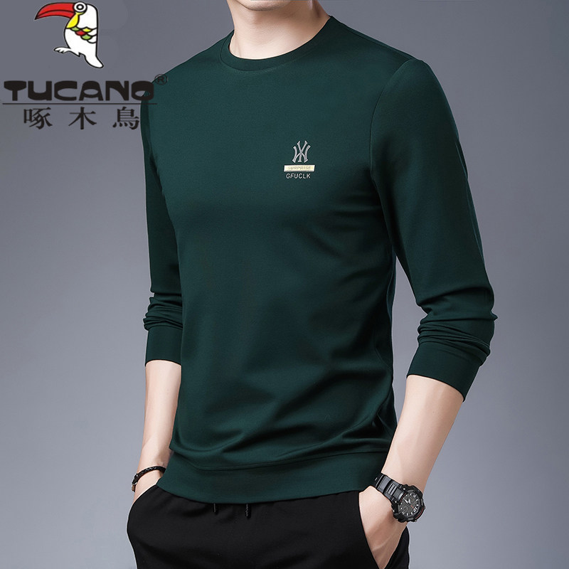 啄木鸟秋季套头卫衣男圆领纯色宽松长袖T恤薄款休闲百搭打底衫潮
