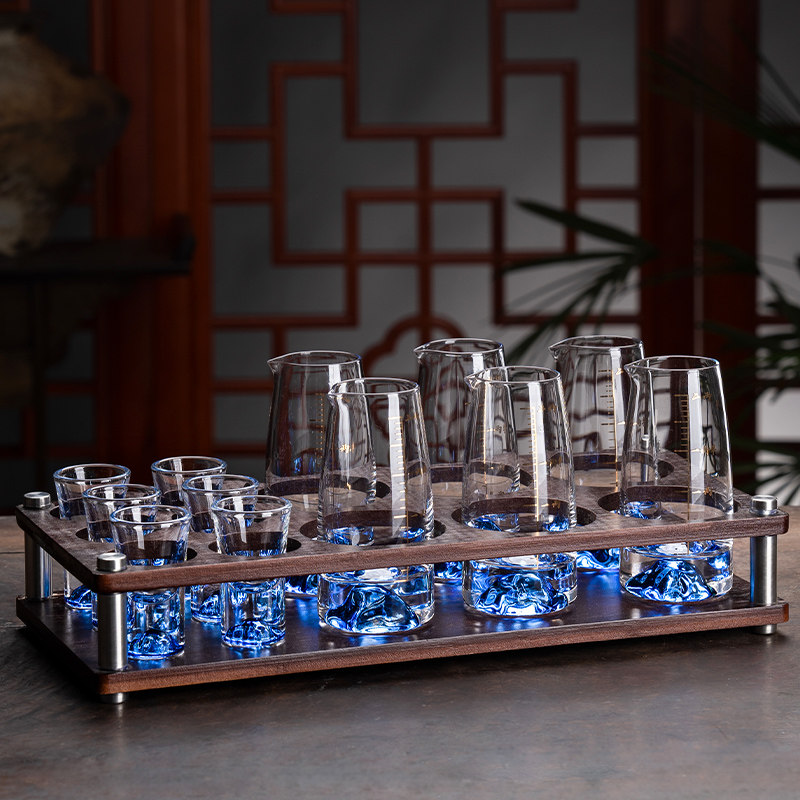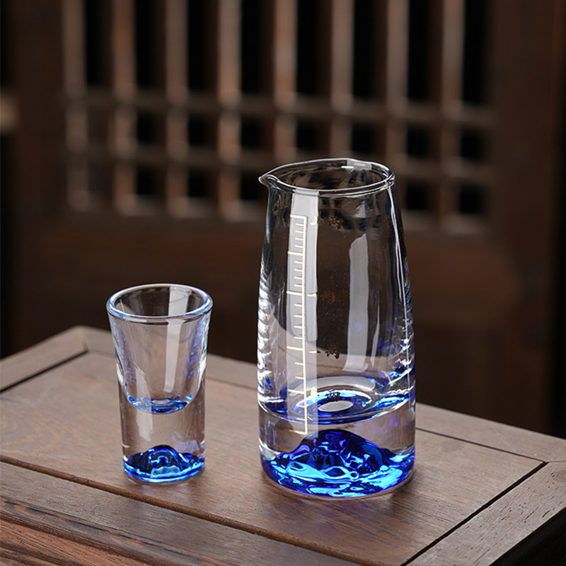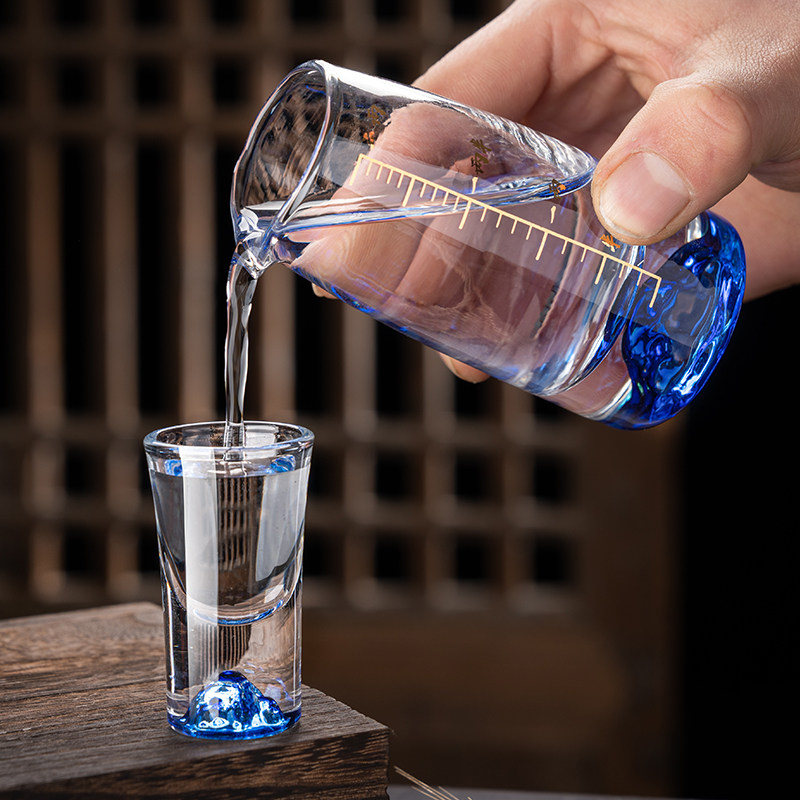 创意蓝山白酒杯套装家用水晶玻璃分酒器带刻度酒具轻奢高档一口杯