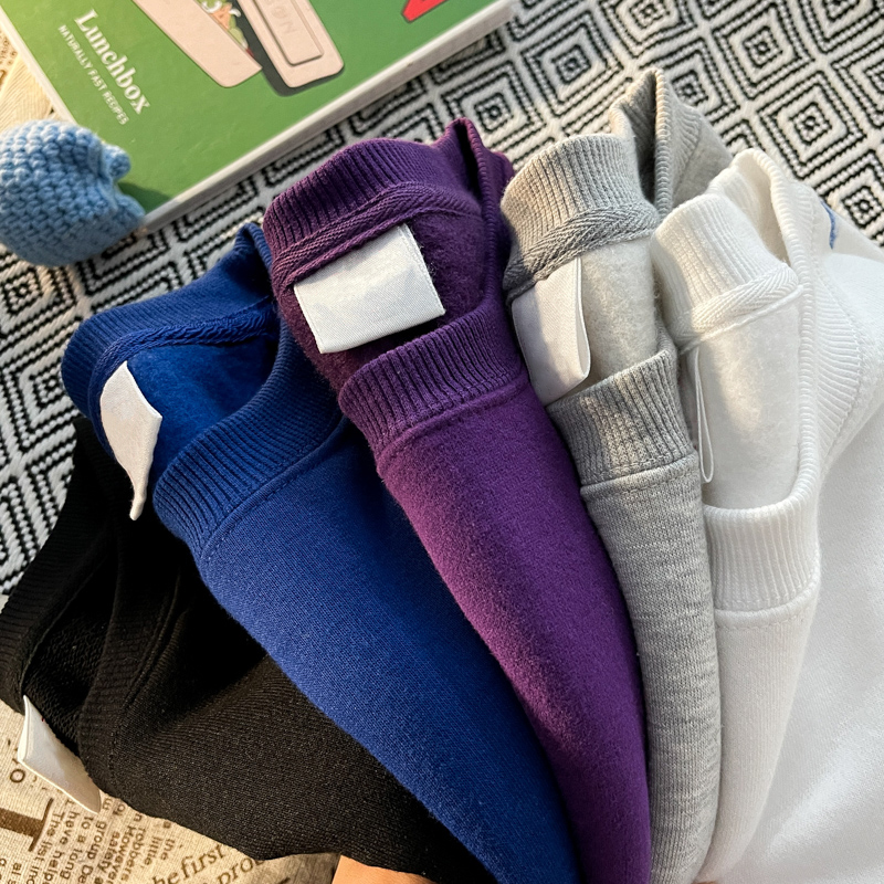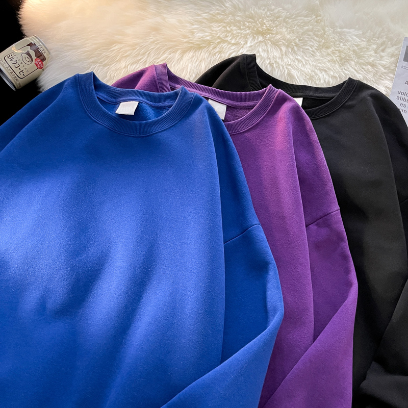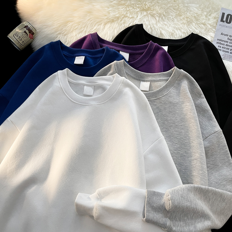 纯色圆领卫衣男女嘻哈套头加绒秋冬款休闲运动上衣宽松长袖体恤衫