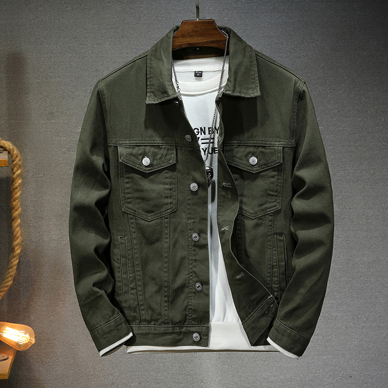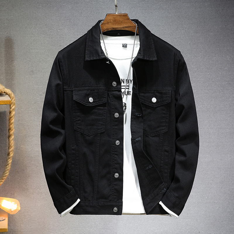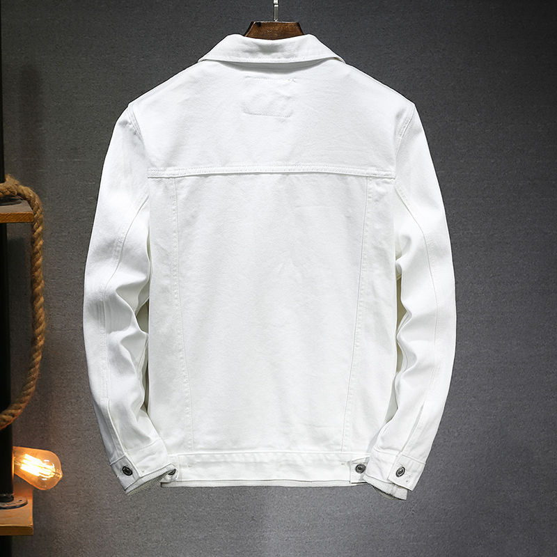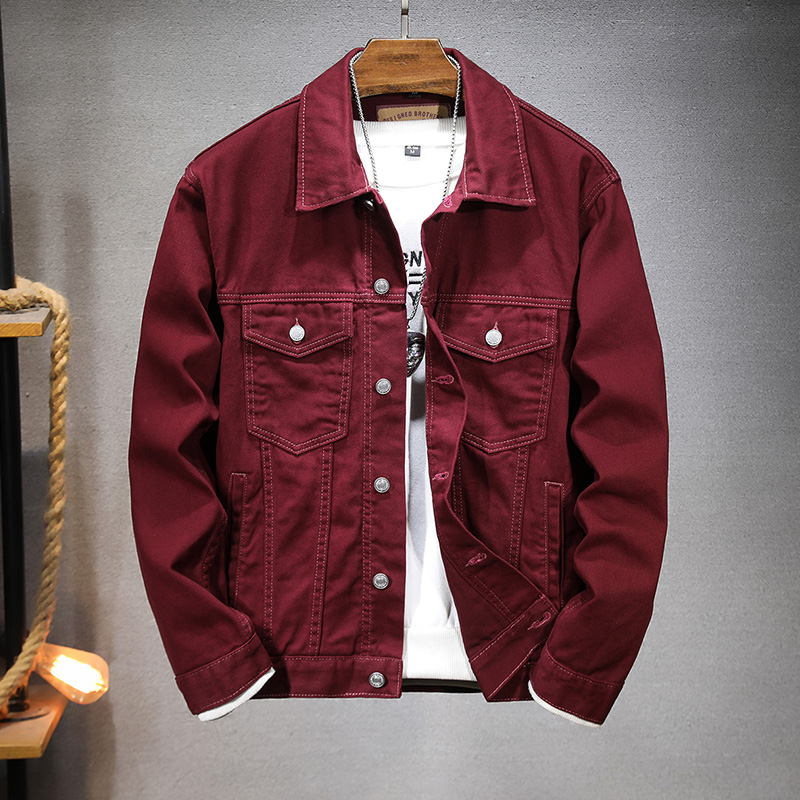 轻奢香港白色牛仔外套男纯棉痞帅机车夹克修身复古百搭红色褂子潮