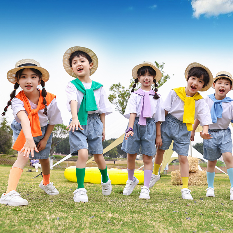 六一儿童节表演服幼儿园毕业照舞蹈合唱服小学生牛仔短裤演出服夏