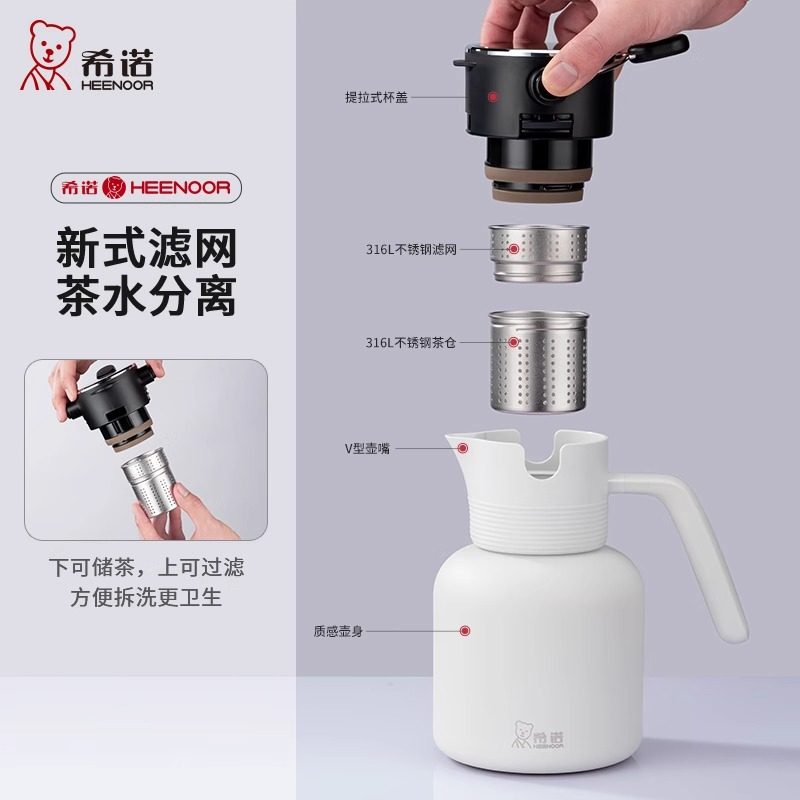 希诺保温壶2026新款316L不锈钢办公家用大容量水壶智能温显焖泡壶
