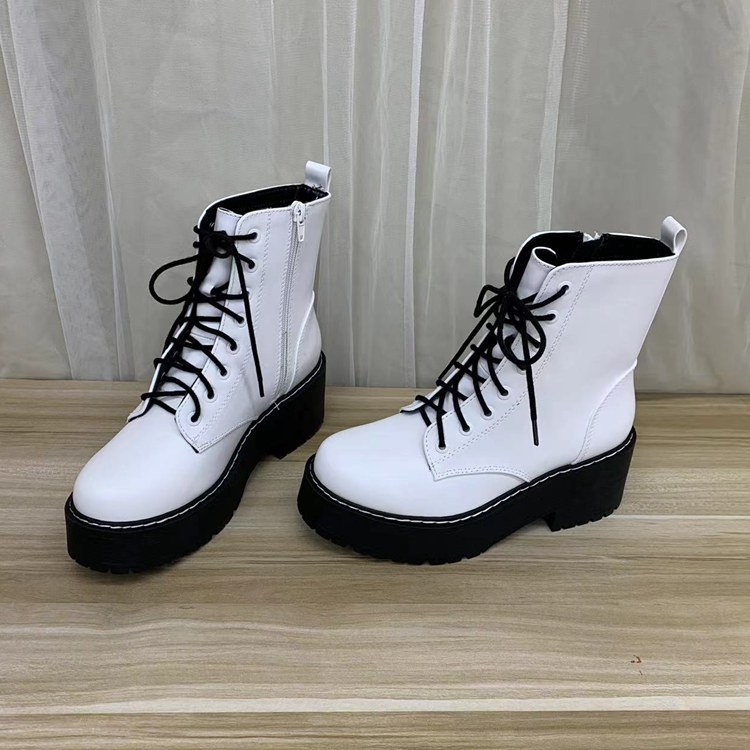 外贸原单秋冬新款短靴骑士靴马丁靴圆头英伦风系带侧拉链
