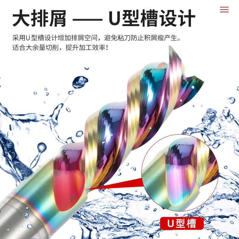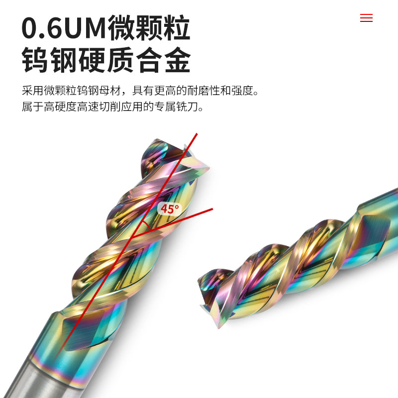 60度3刃铝用钨钢铣刀七彩高光专用加长铣刀cnc硬质合金涂层立铣刀