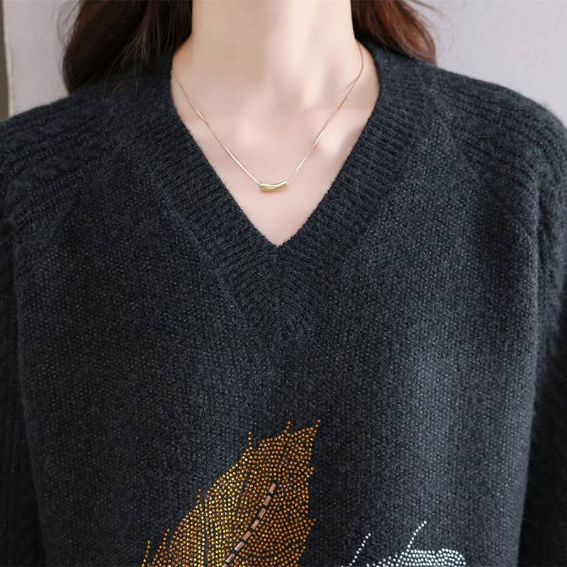 大码胖mm遮肚子显瘦v领女士毛衣秋冬季宽松羊毛针织打底衫中长款