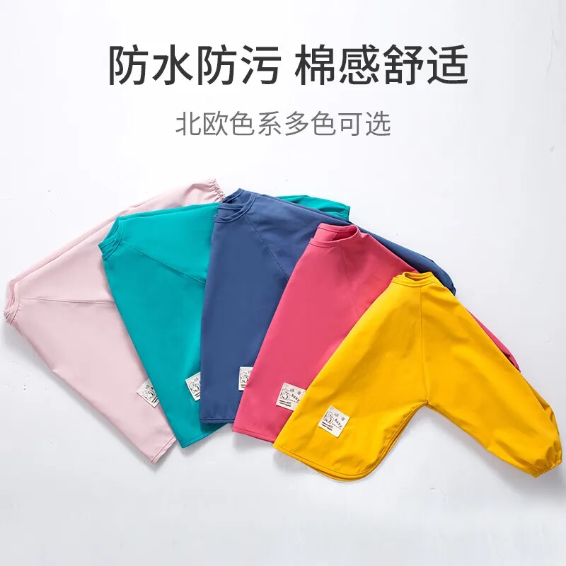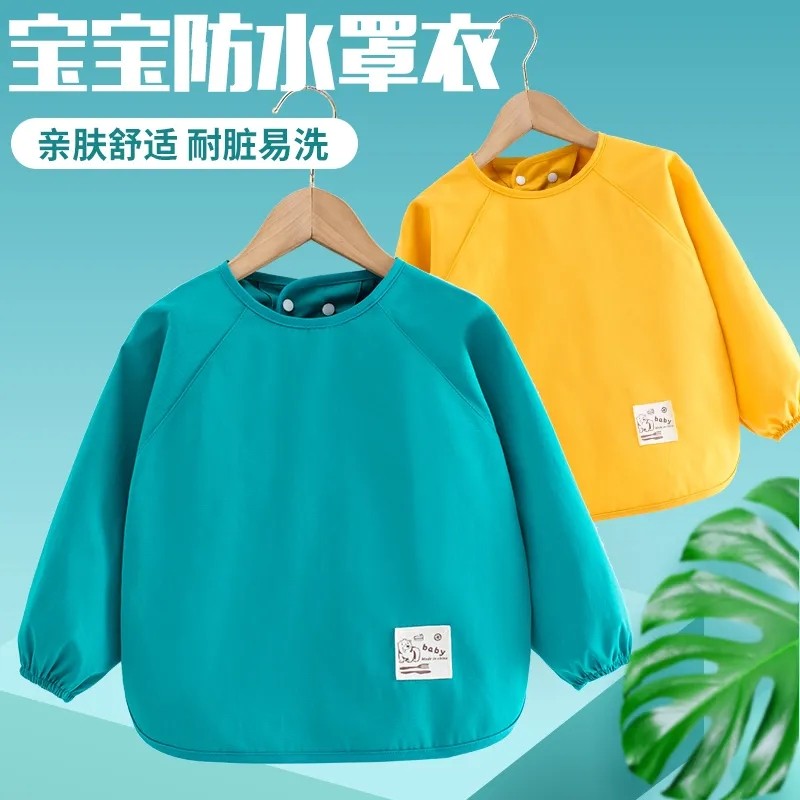 儿童长袖宝宝罩衣防水防脏反穿衣纯色婴儿吃饭围兜饭兜护衣画画衣