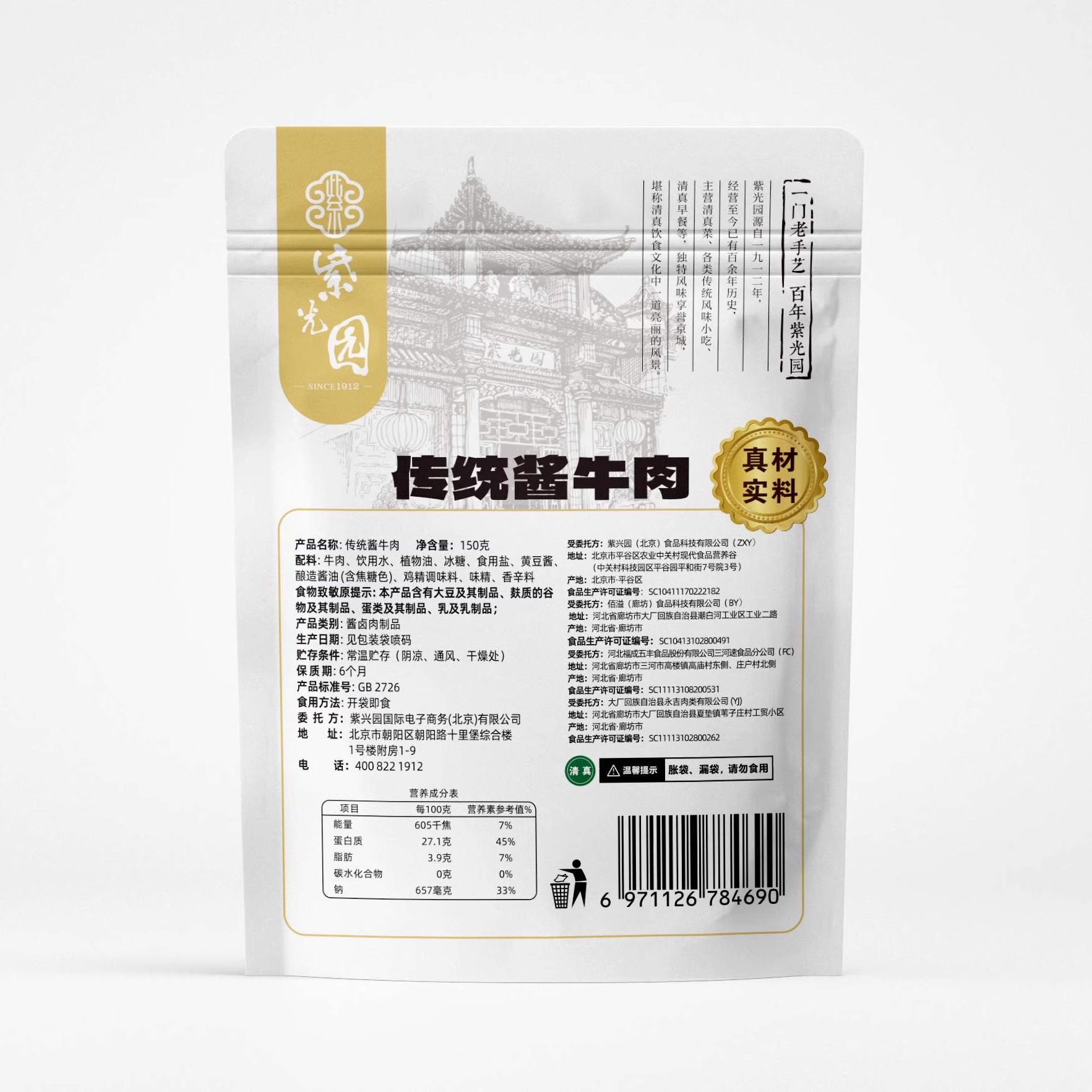 紫光园经典老字号酱牛肉酱卤牛肉熟食开袋即食清真牛肉150g/袋