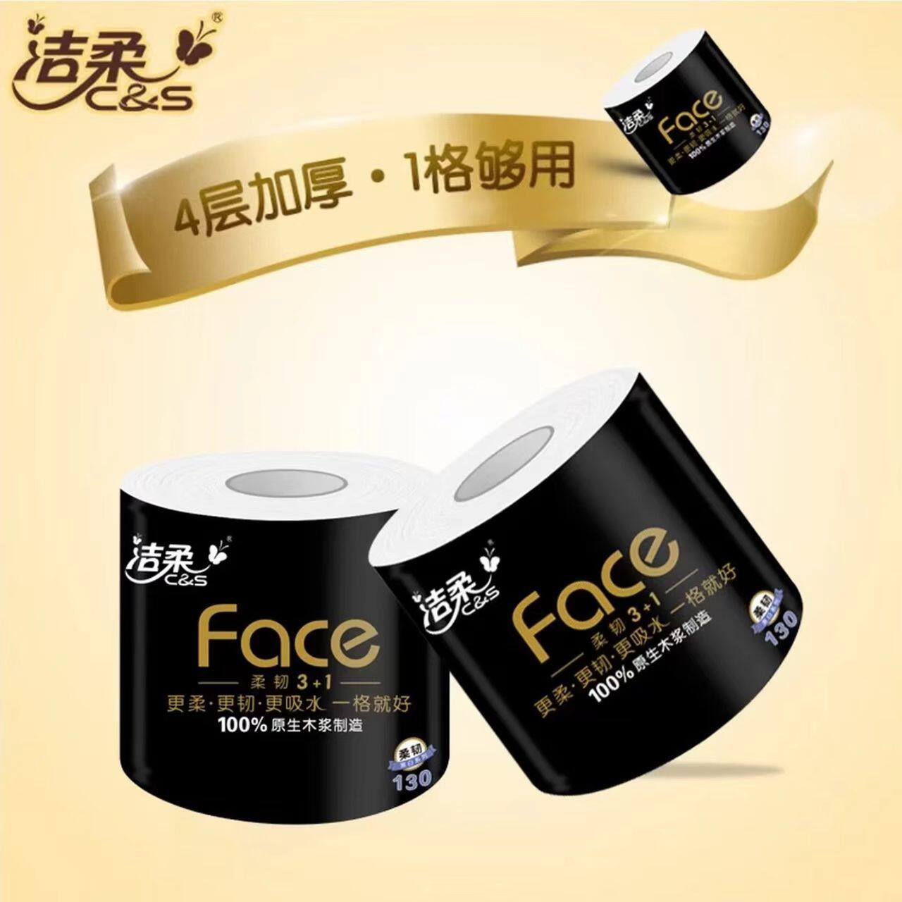 洁柔卷纸黑Face4层130克大卷家用纸巾卷筒纸2元包邮厕纸卫生纸Z