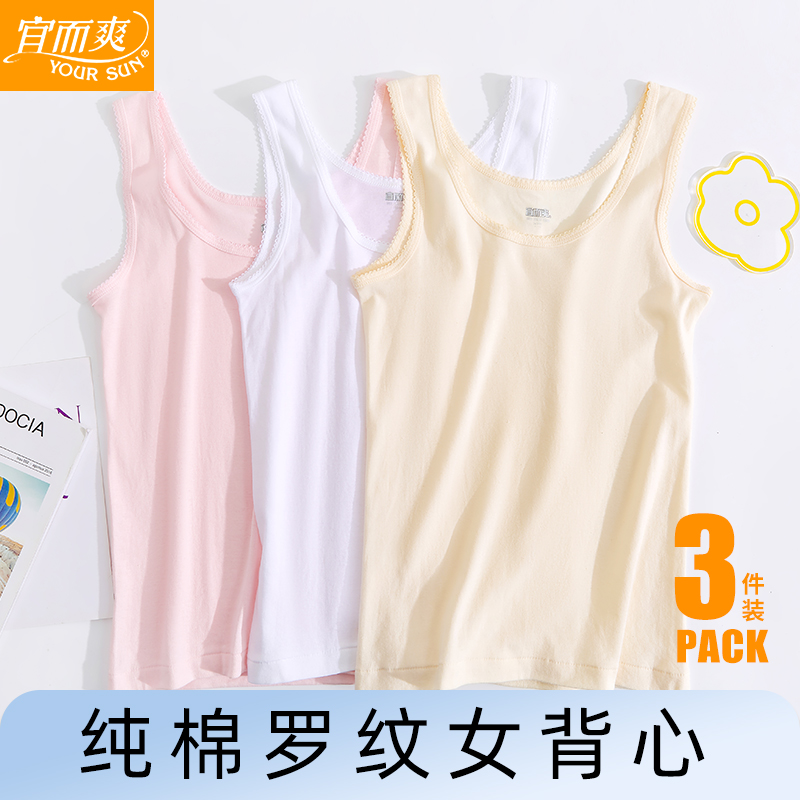 宜而爽女士纯棉背心妈妈夏季薄款打底睡衣宽松大码罗纹全棉女上衣