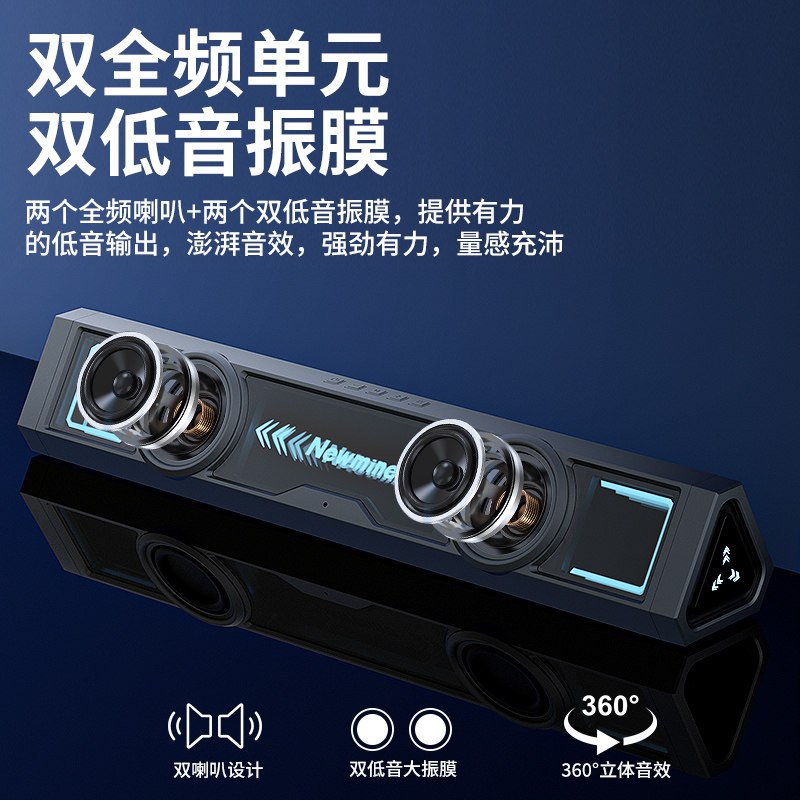 纽曼BT518电脑音响台式重低音家用有线长条桌面游戏电竞音箱蓝牙