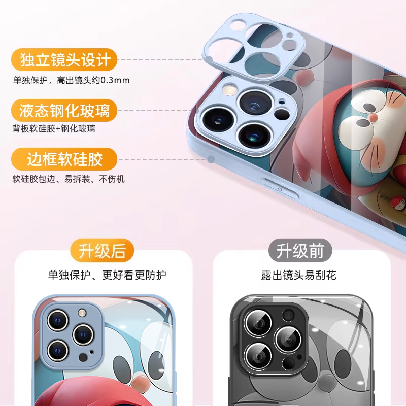 适用于苹果15Pro手机壳iPhone14时尚13mini创意12卡通11动漫XSMax多啦A梦6s金属漆玻璃保护套7全包8Plus防摔