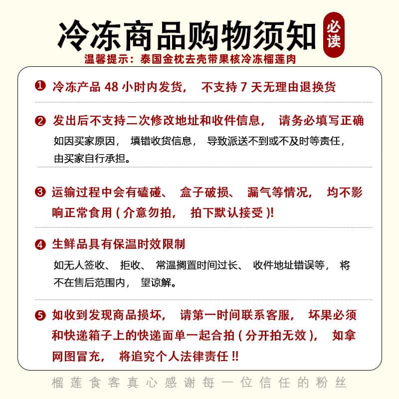 泰国进口冷冻金枕榴莲肉 香甜软糯 带核榴莲肉