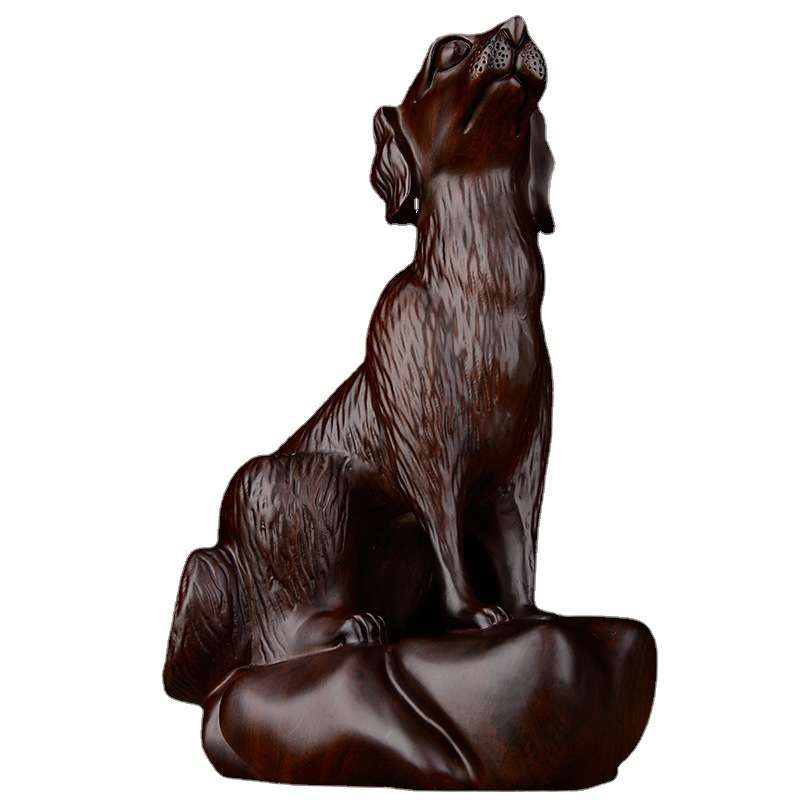 木雕摆件《招财狗》实木质雕刻动物生肖狗客厅装饰工艺品