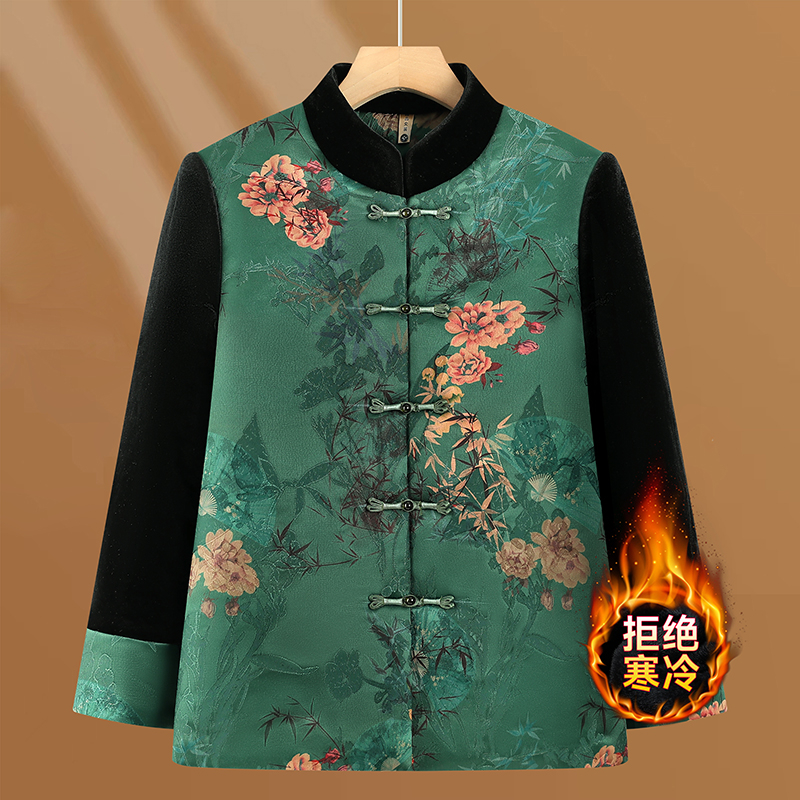 妈妈冬装棉衣加绒加厚外套中老年女秋冬新款棉袄中年女装保暖棉服