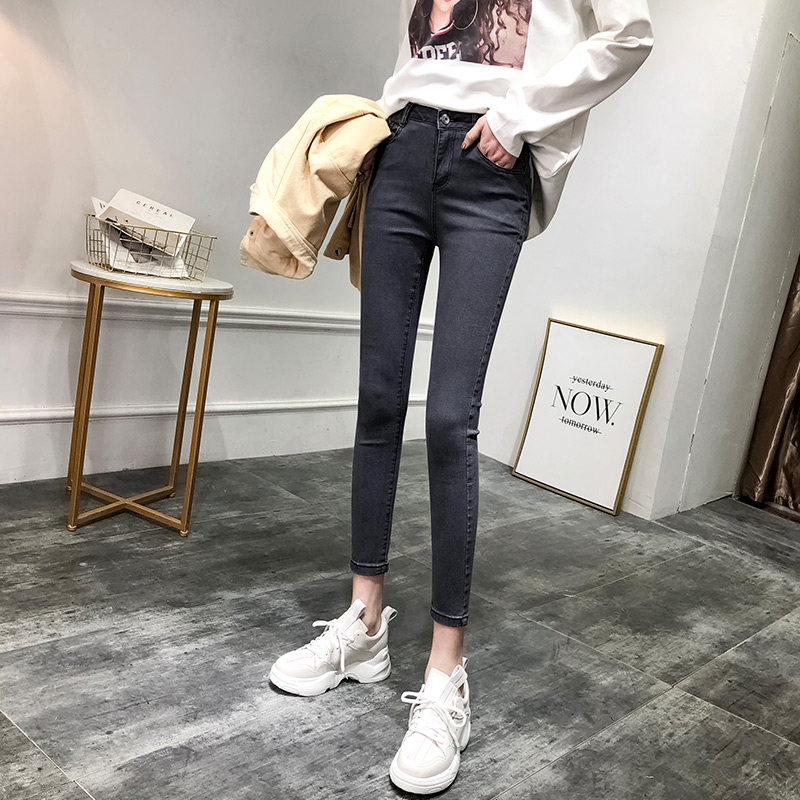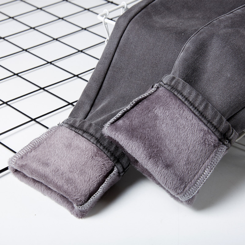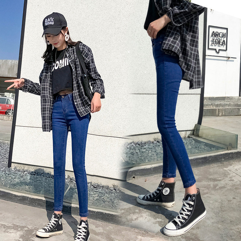 小个子高腰秋冬八分小脚牛仔裤女深蓝色弹力显瘦2025薄绒九分长裤