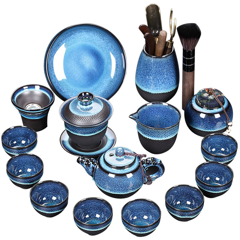 高档窑变建盏茶具套装小套家用陶瓷盖碗功夫泡茶壶茶杯办公室会客