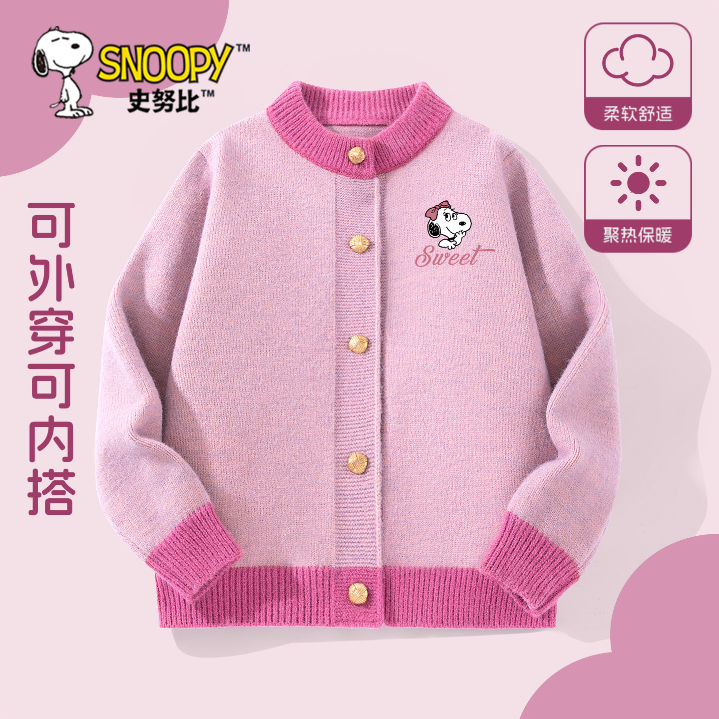 史努比儿童开衫毛衣2026新款女孩外套中大童针织衫秋冬款女童上衣