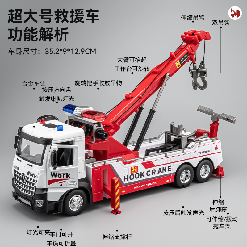 大号合金拖车玩具儿童道路救援车模型汽车起重机男孩工程车大吊车