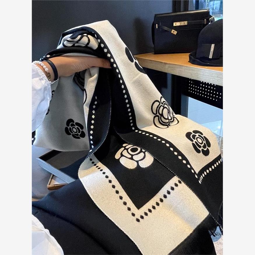 围巾山茶花双面秋冬新款冬季百搭香风仿羊绒保暖披肩加厚围脖两用