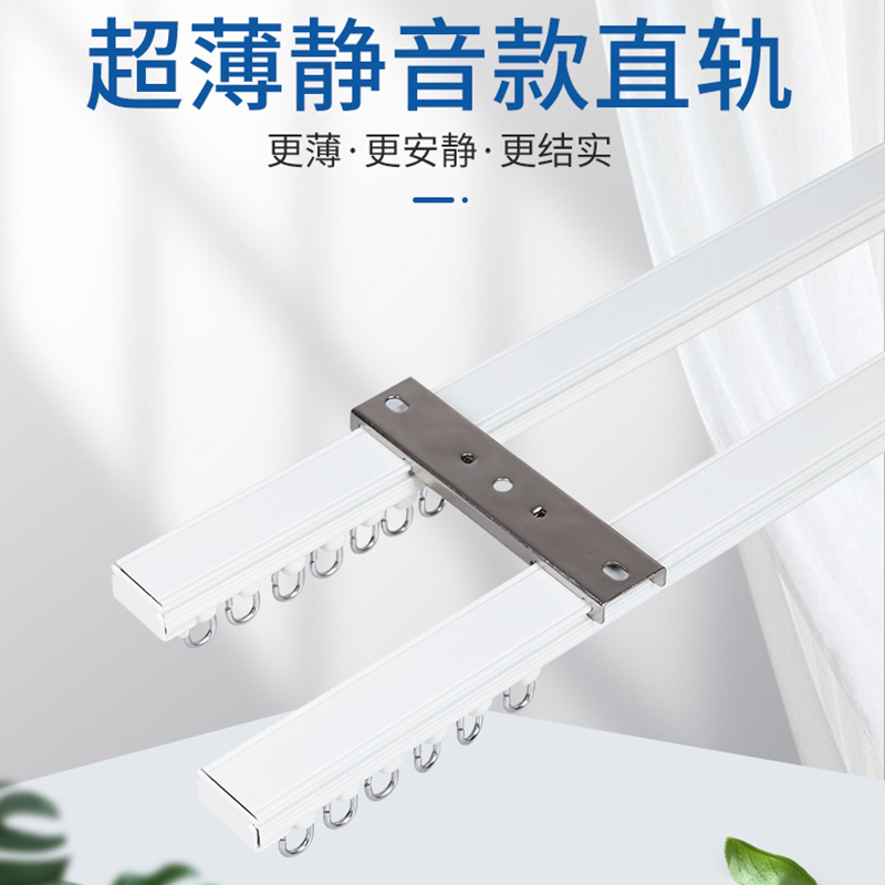 超薄铝合金纳米静音直轨弯轨窗帘盒轨道顶装侧装单双轨道滑轮