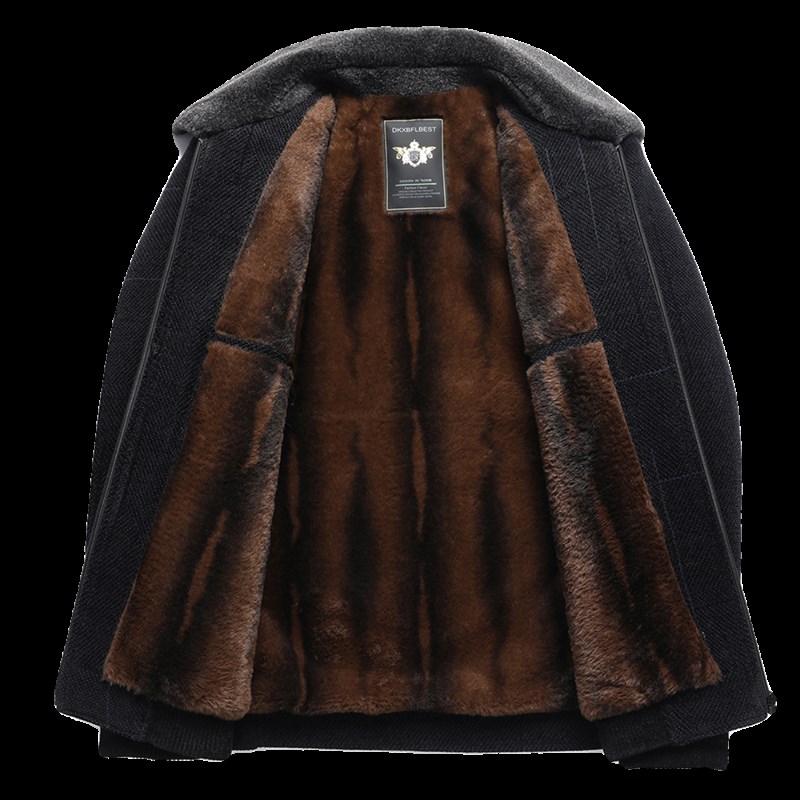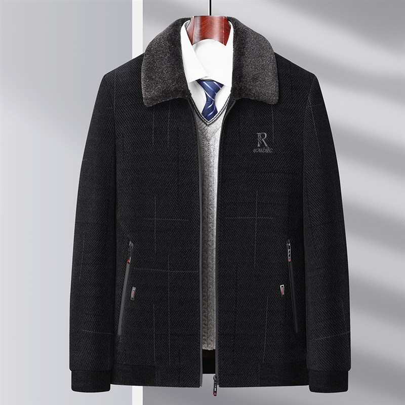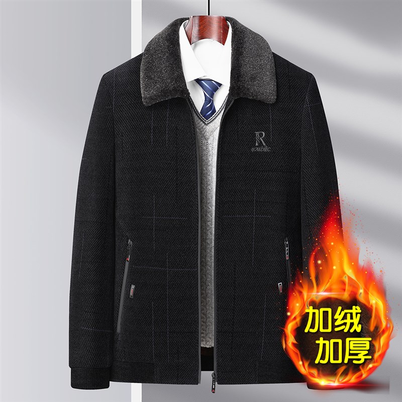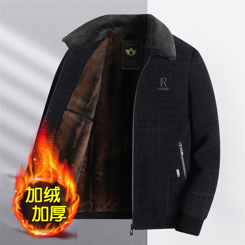爸爸秋冬加绒加厚款雪尼尔外套中年男士翻领铺棉外套中老年人男装
