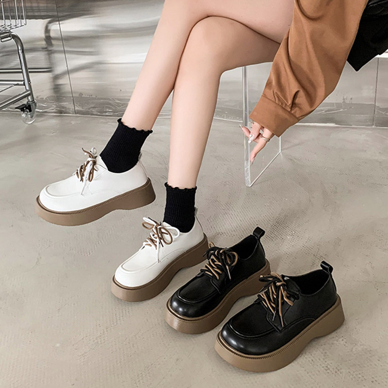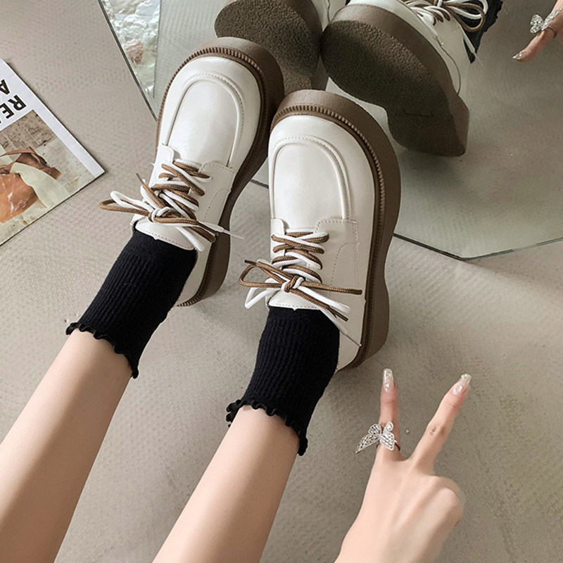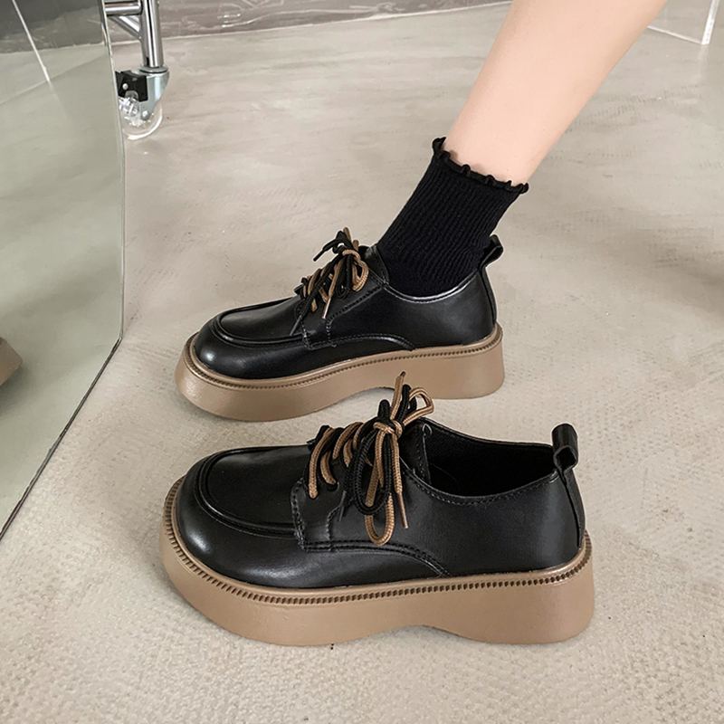 英伦风小皮鞋女2025春季新款百搭复古圆头系带厚底休闲乐福鞋单鞋