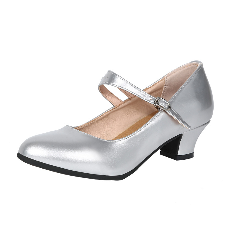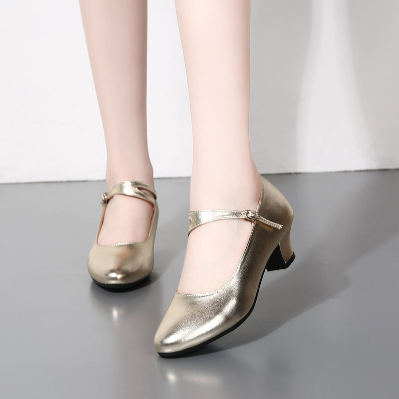 日本品质拉丁舞鞋舞蹈鞋女软底中跟成人跳舞鞋广场舞鞋银色表演四