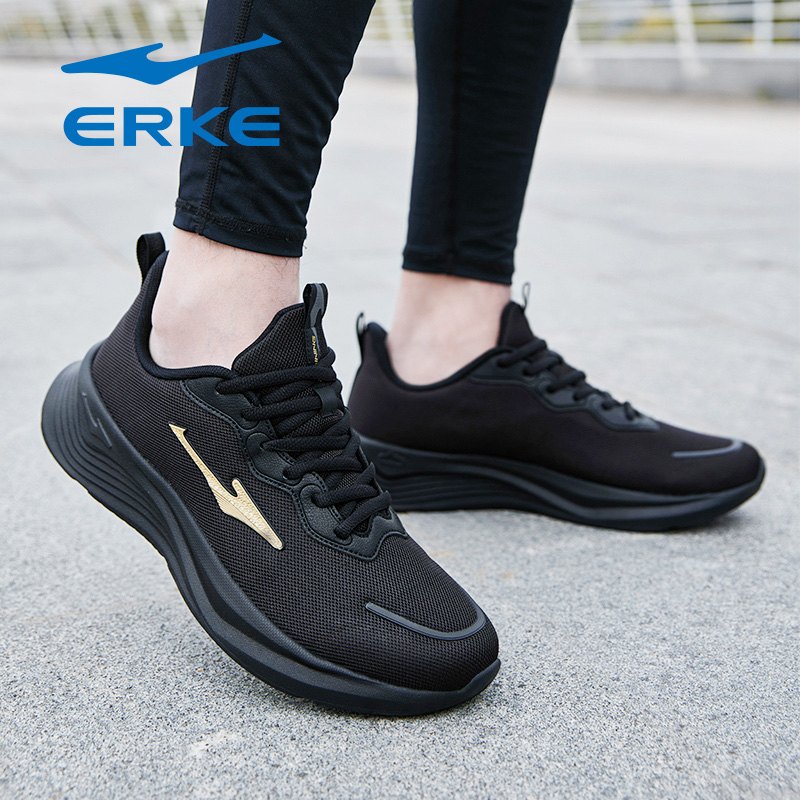 鸿星尔克运动鞋男鞋秋季新款雨季防水皮面黑色送爸爸父亲跑步鞋子