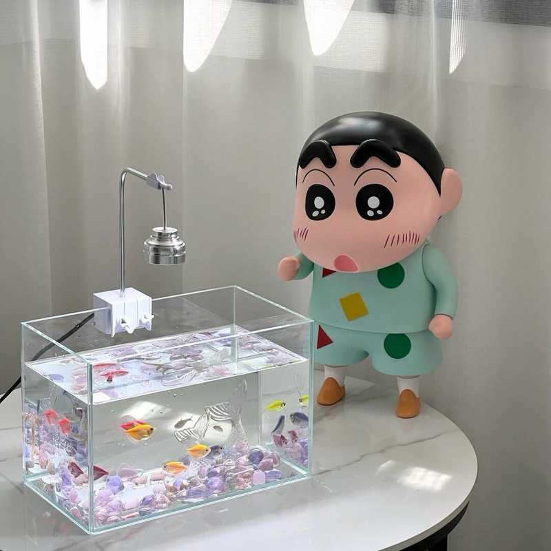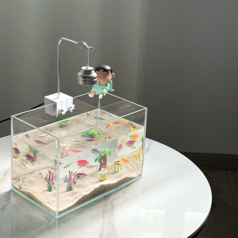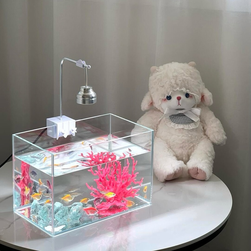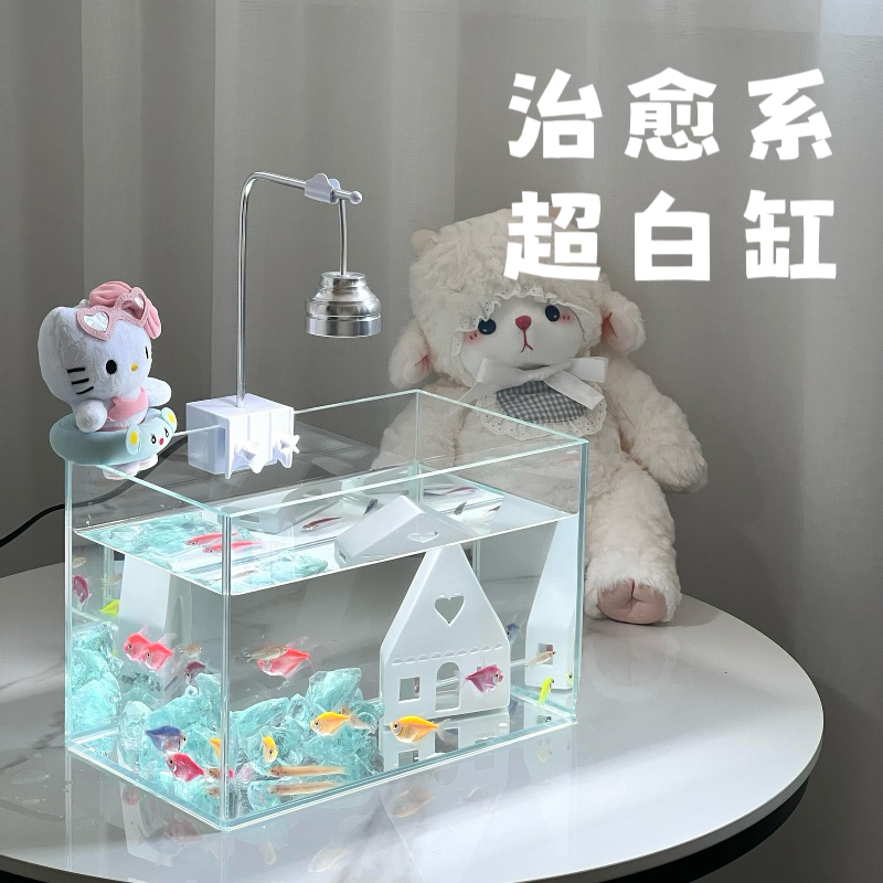 高透超白玻璃鱼缸斗鱼缸天使鱼养鱼桌面小型观赏客厅生态造景装饰