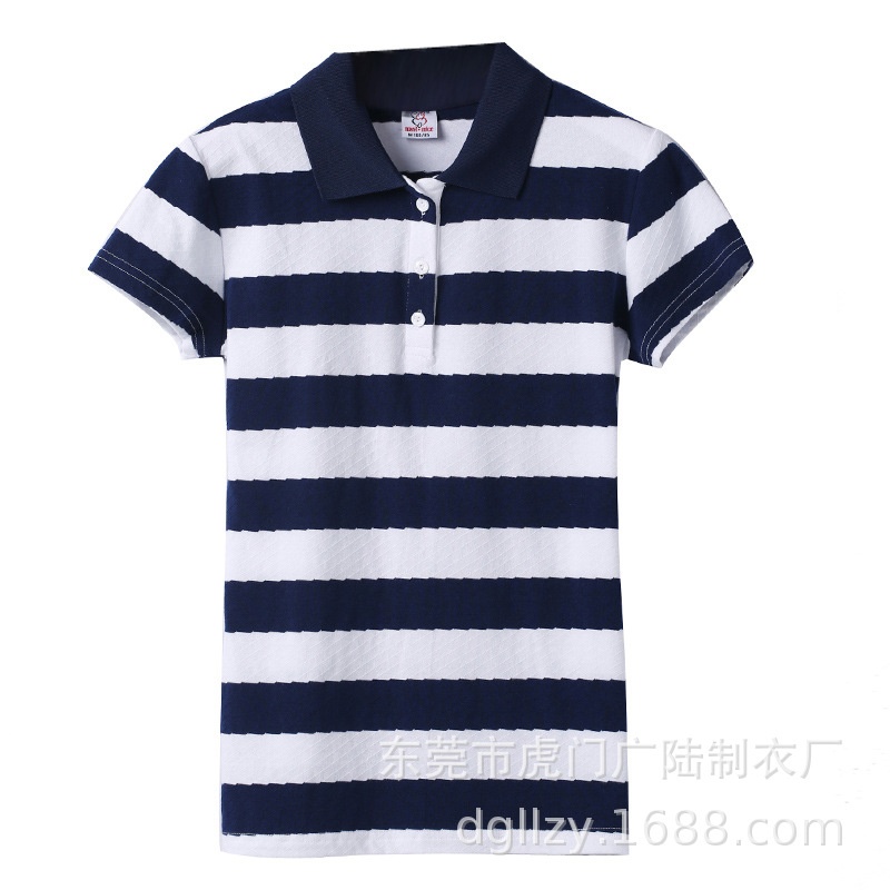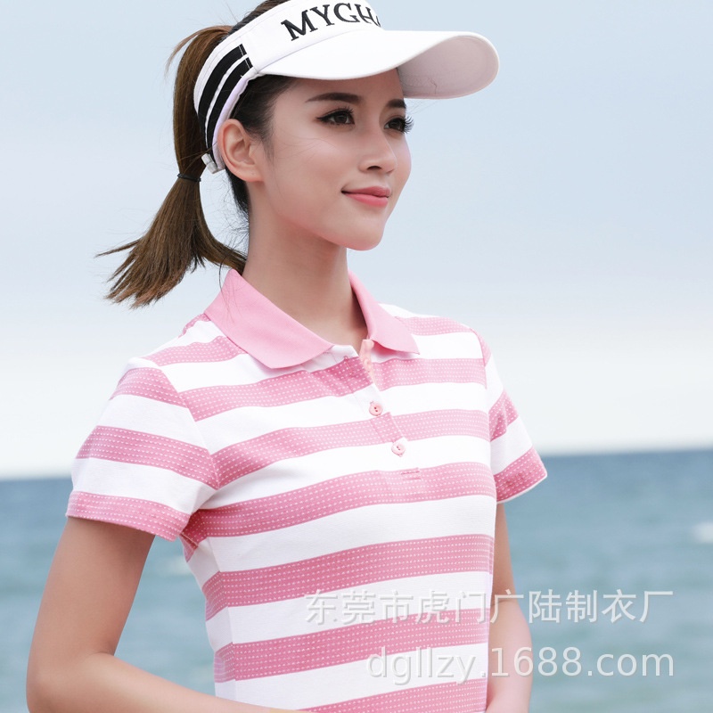 夏季翻领短袖条纹有领女t恤宽松大码休闲装纯棉透气运动POLO衫