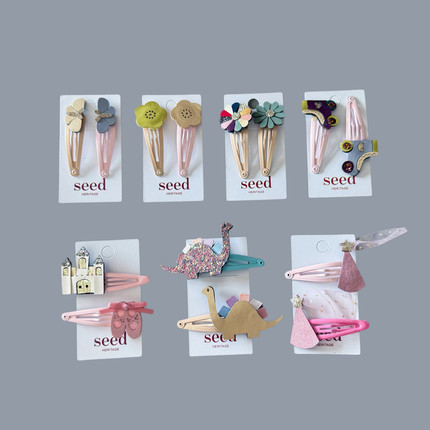 Seed北欧风恐龙女孩发夹发卡外贸公主头饰发饰花朵蝴蝶卡通对夹In