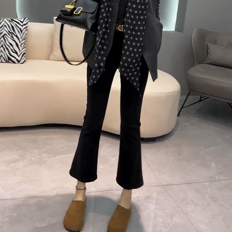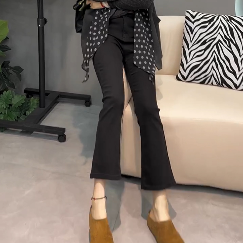 2025秋季新款大码高腰弹力黑色九分牛仔裤女胖mm显瘦百搭微喇裤子