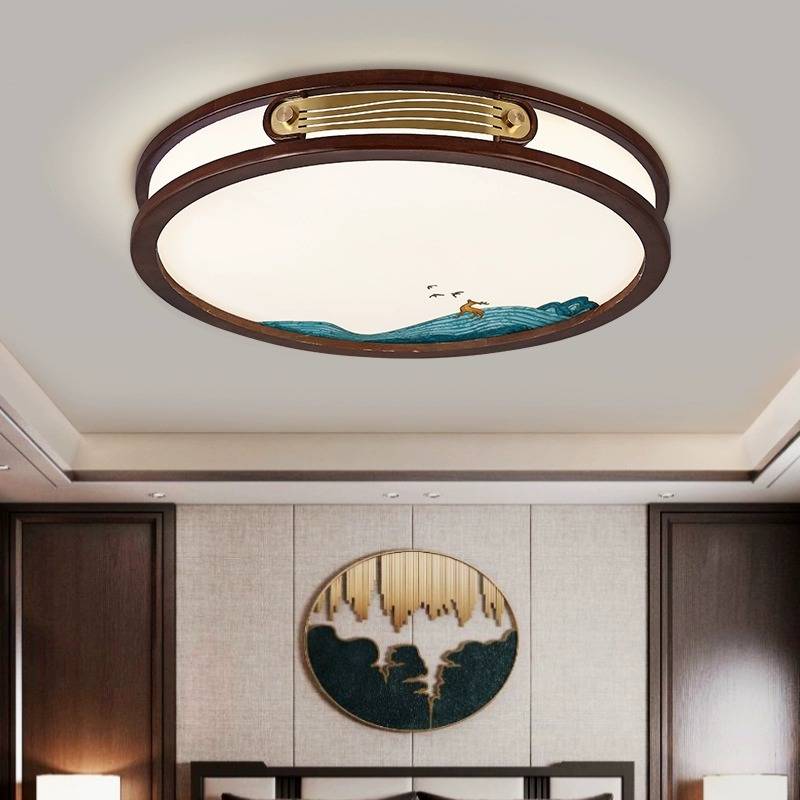 新中式吸顶灯长方形led实木客厅灯具简约现代胡桃木色房间卧室灯