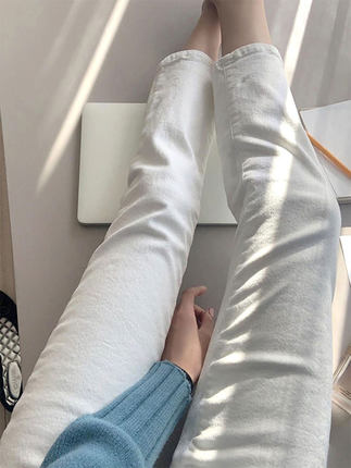 春白色裤子女宽松欧货直筒牛仔裤2024夏高腰小个子八分烟管裤薄款