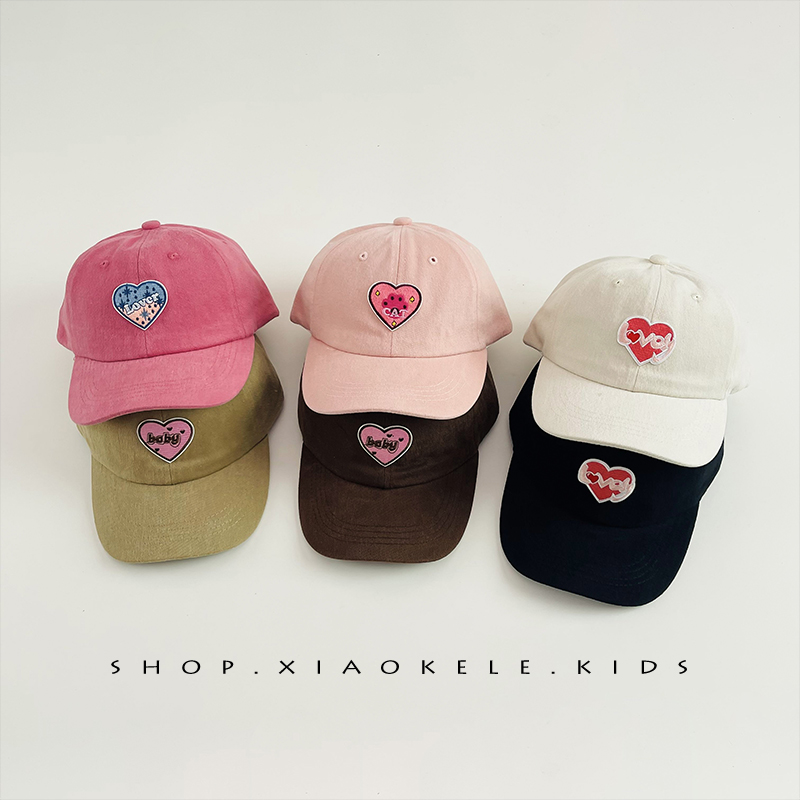 儿童帽子韩系爱心刺绣女孩鸭舌帽