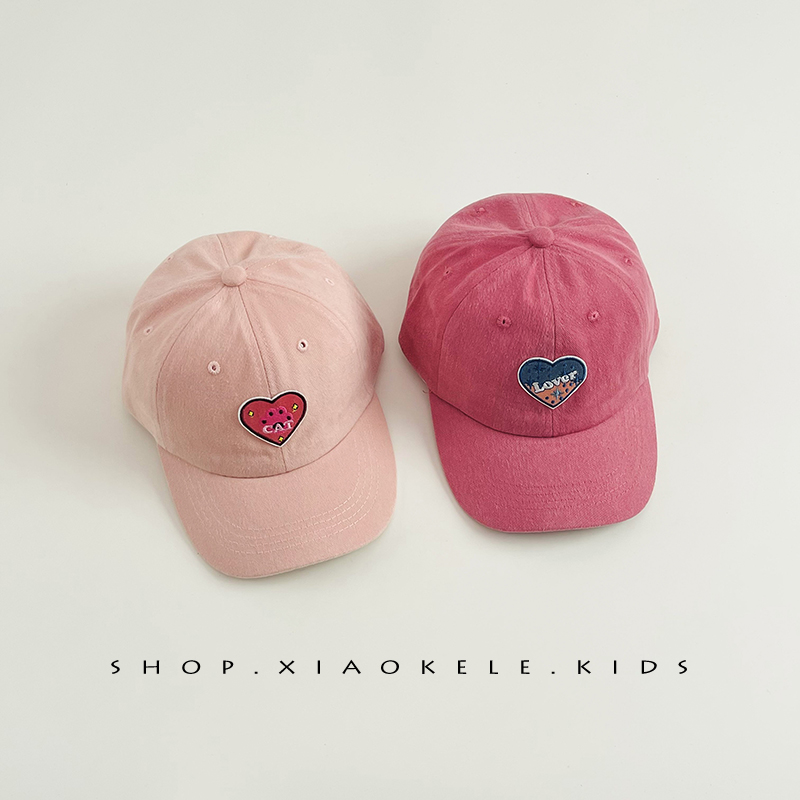 儿童帽子春秋韩系爱心刺绣女孩遮阳鸭舌帽女童宝宝洋气百搭棒球帽