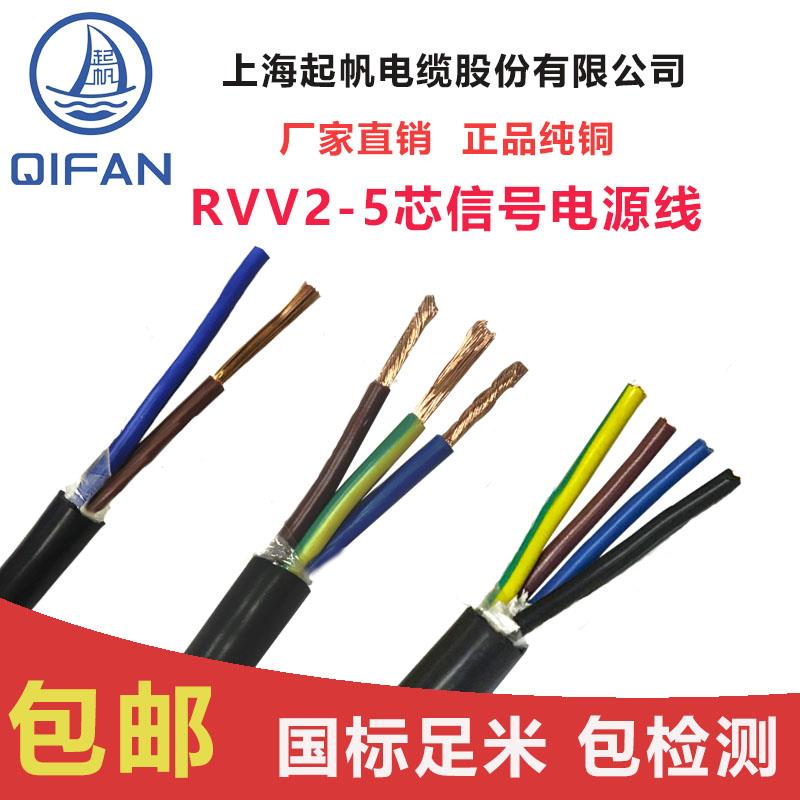 RVV起帆电缆2-5芯电源线 线0.5/1.5/2.5/46平方铜芯护套线 线电线