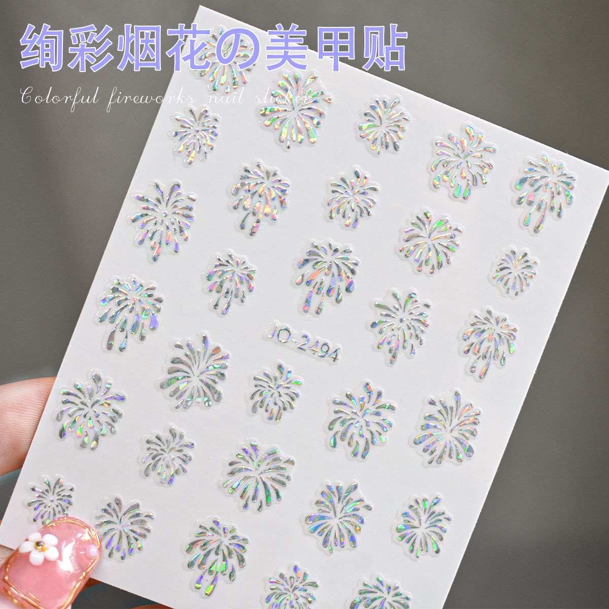 爆款炫彩烟花立体美甲贴纸指甲装饰品网红爆款带背胶