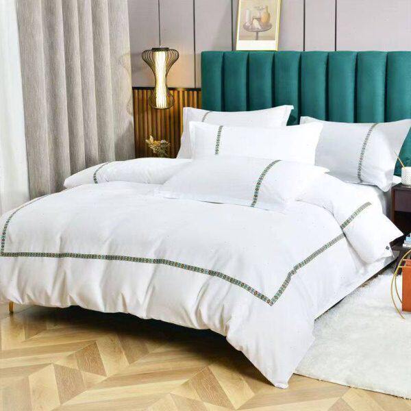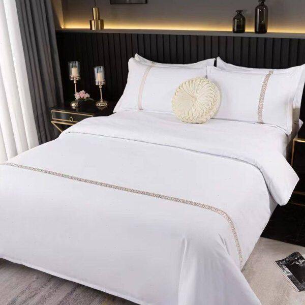 酒店民宿纯白色四件套宾馆专用布草被套床单公寓三件套被罩床用品