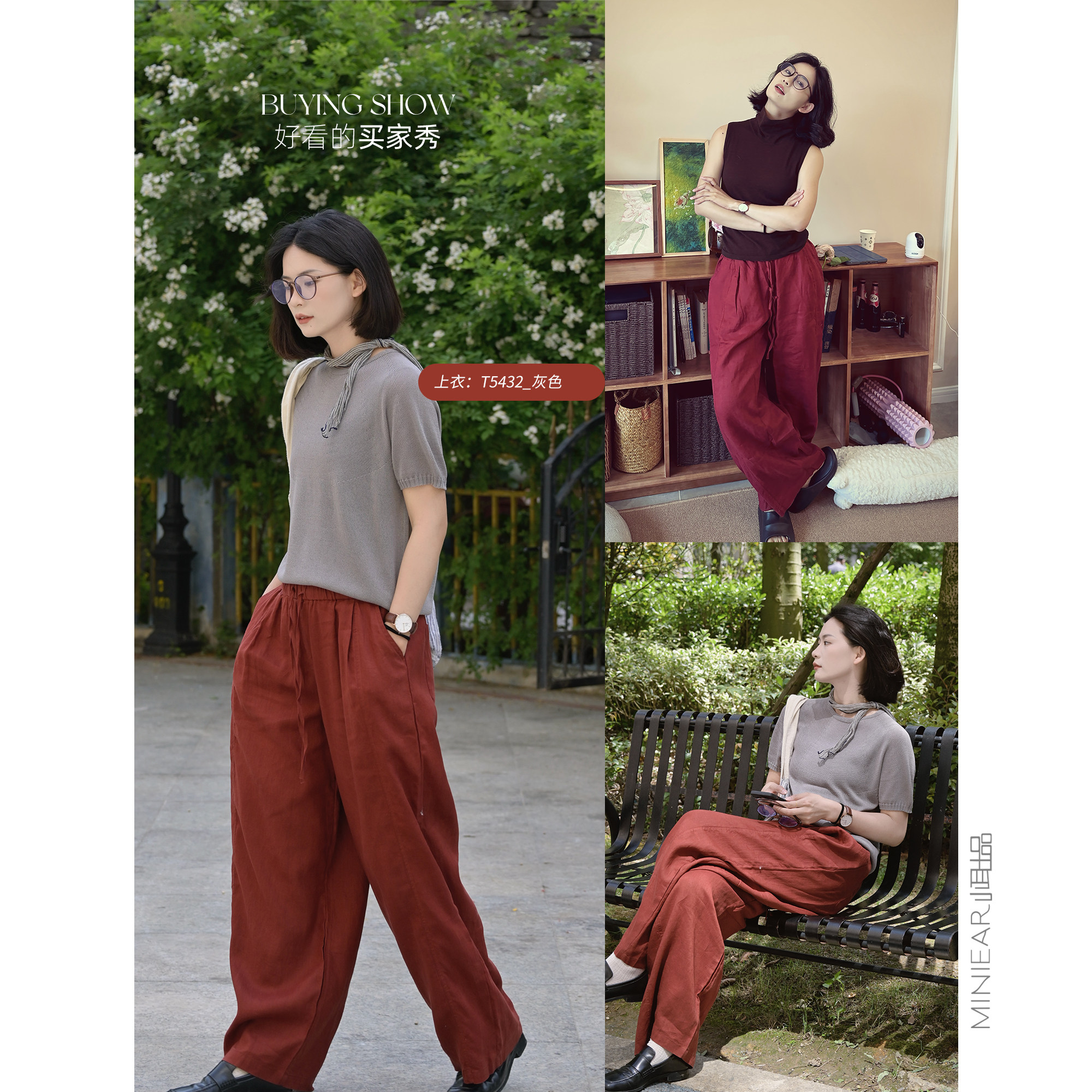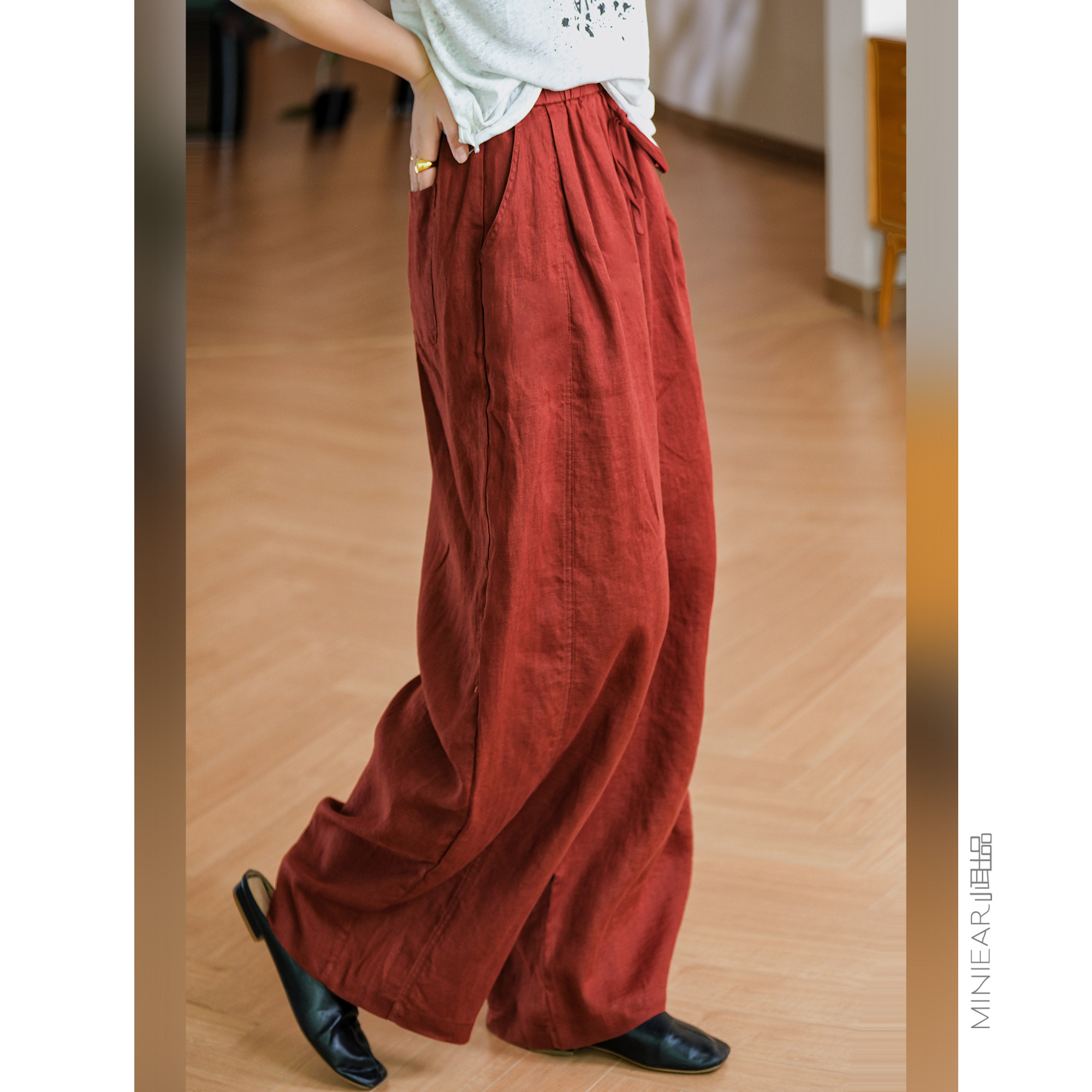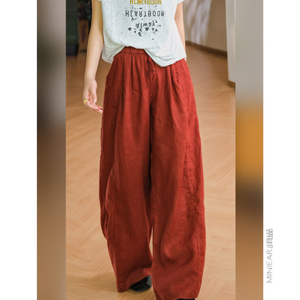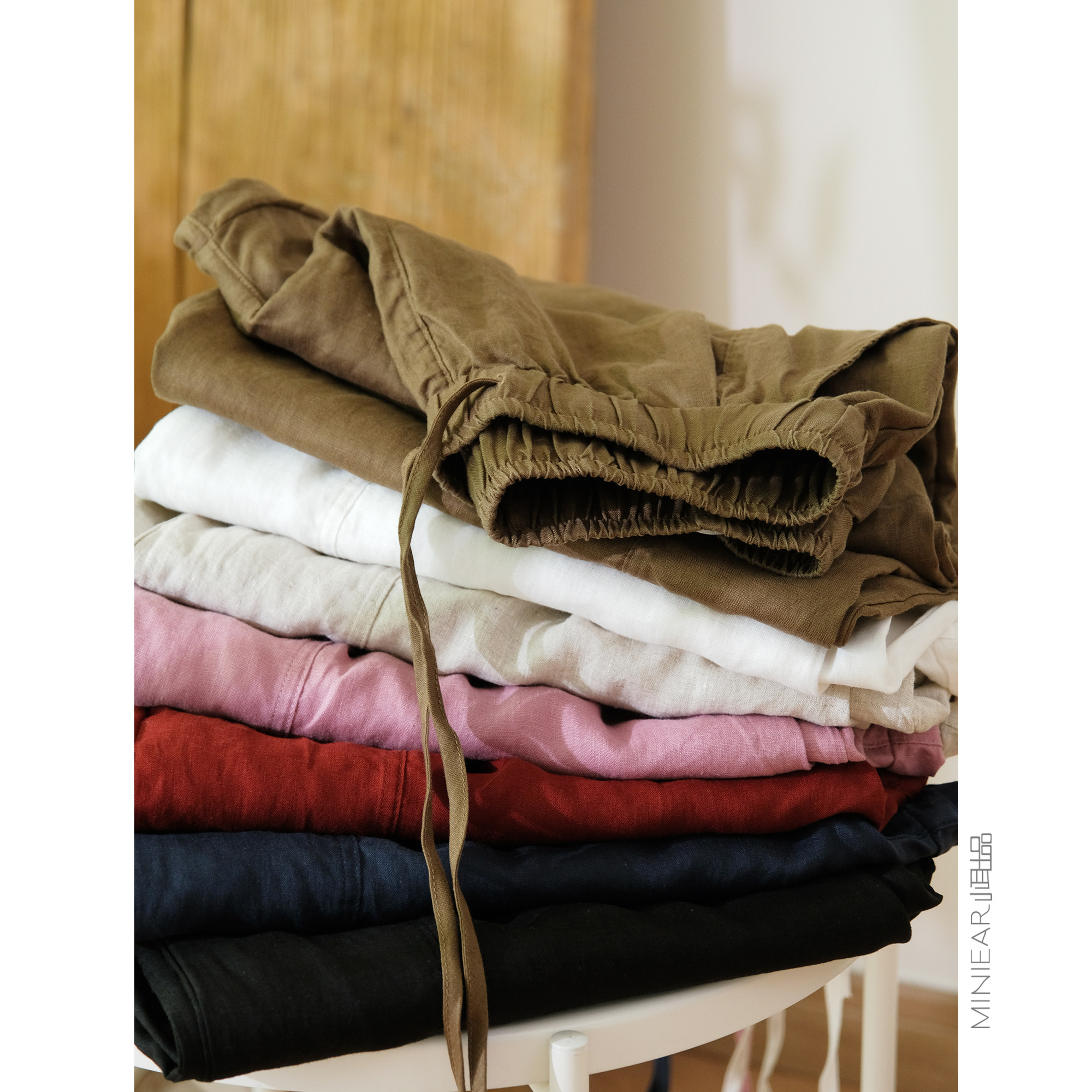 小耳出品【时髦亚麻裤~香蕉裤型】100%亚麻松紧腰宽松显瘦阔腿裤