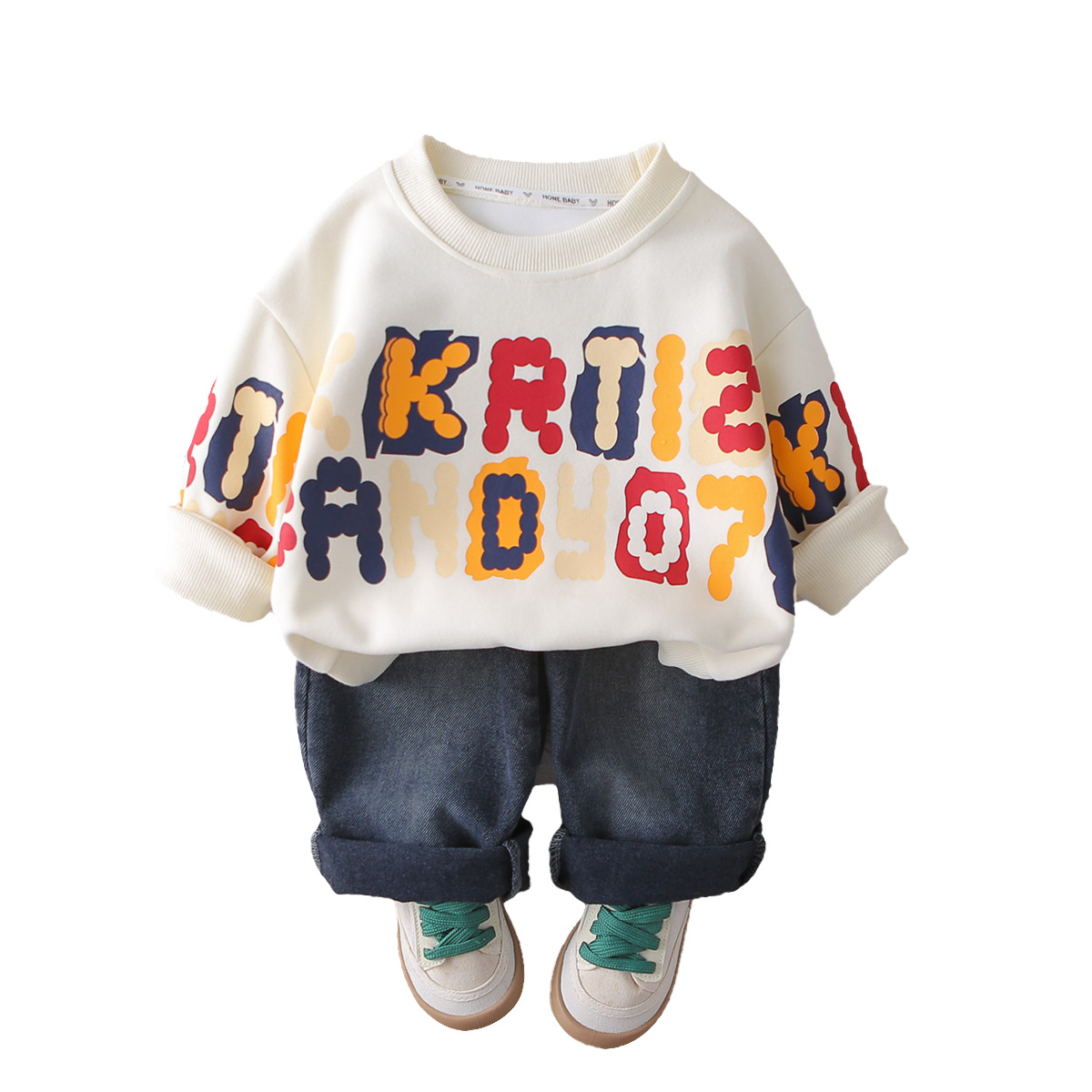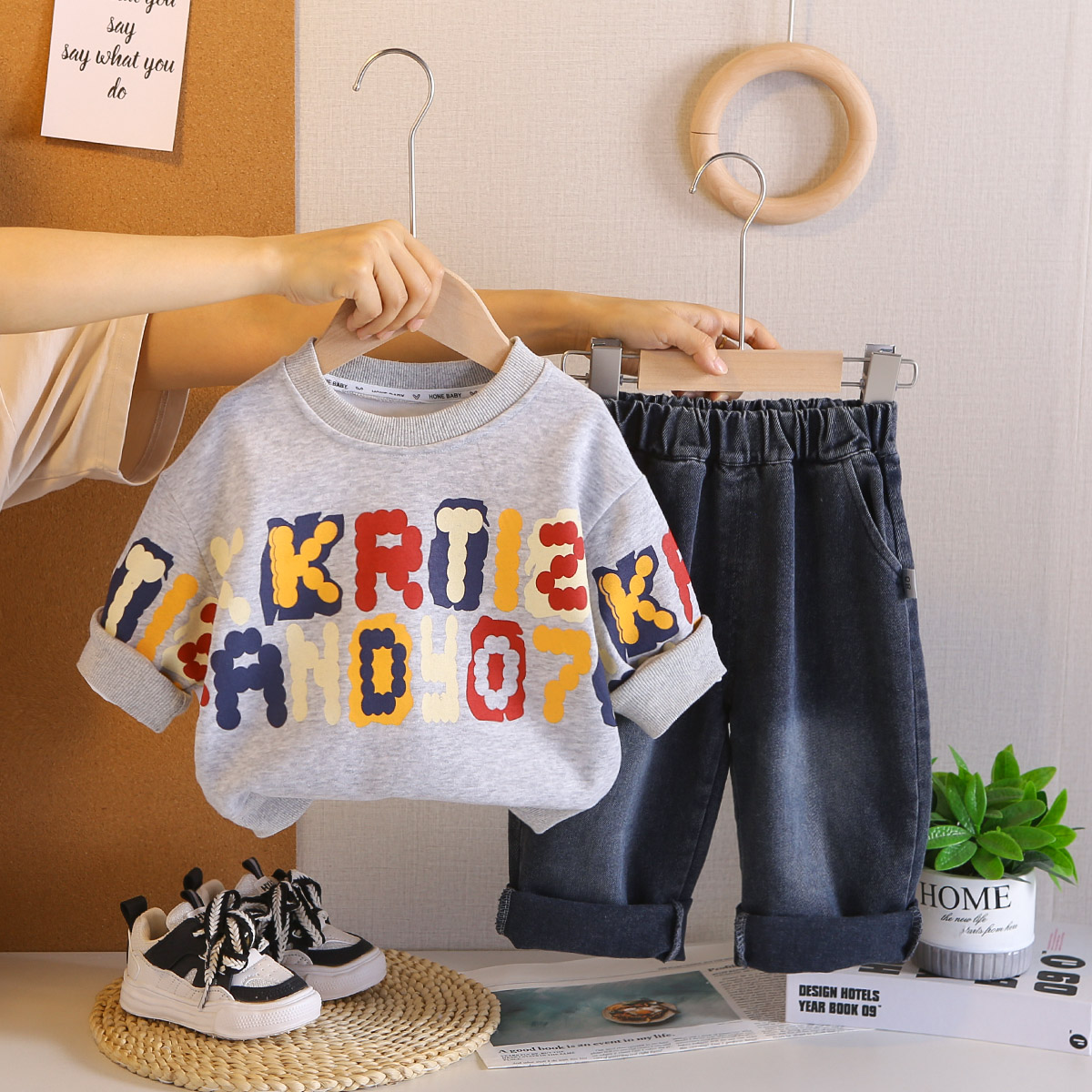 男童秋装套装2025新款儿童洋气两件套宝宝春季字母印花卫衣牛仔裤