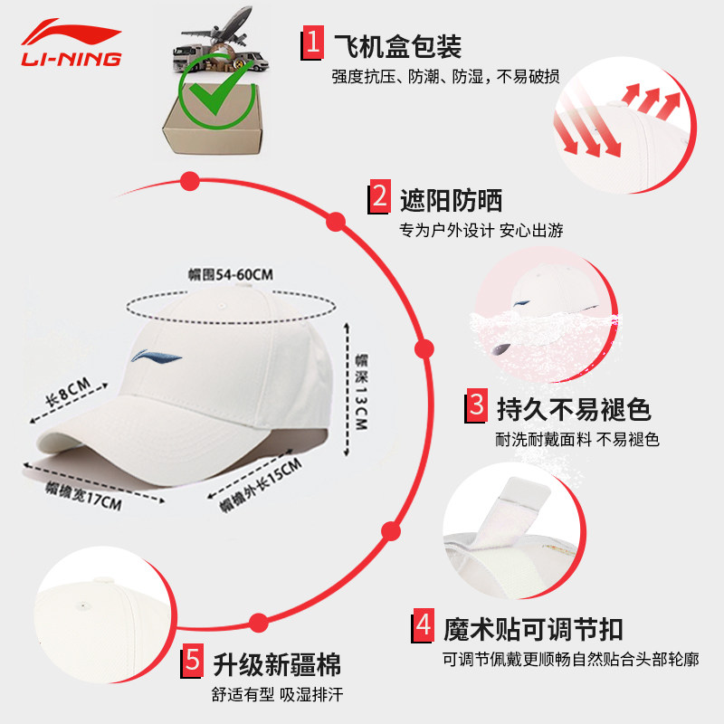 李宁男女款鸭舌帽大檐防晒棒球帽