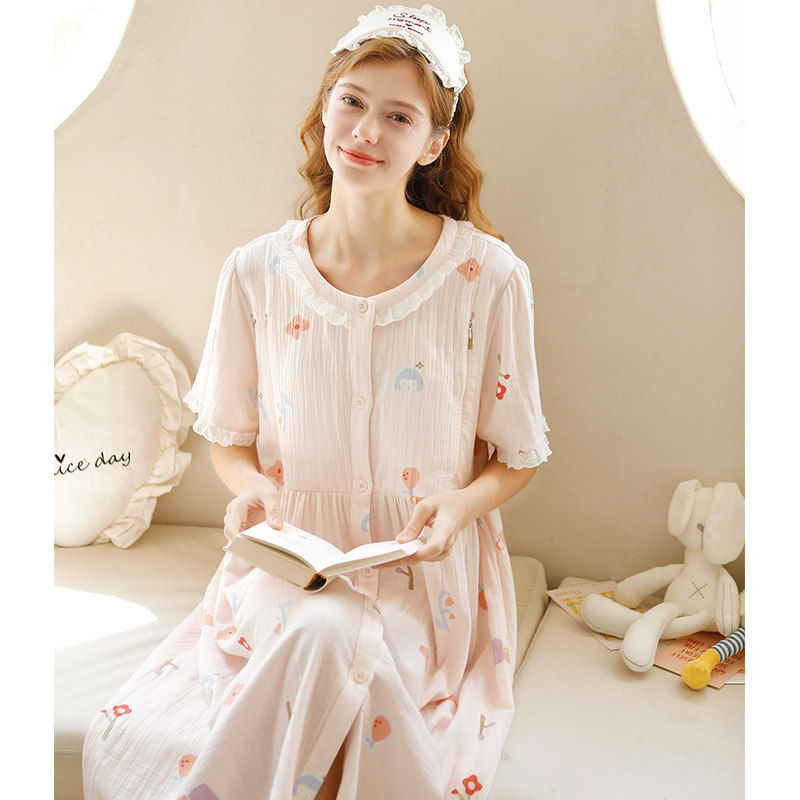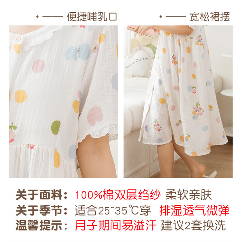 家时光哺乳睡裙夏季薄款产后纯棉纱布孕妇睡裙进产房待产裙家居裙