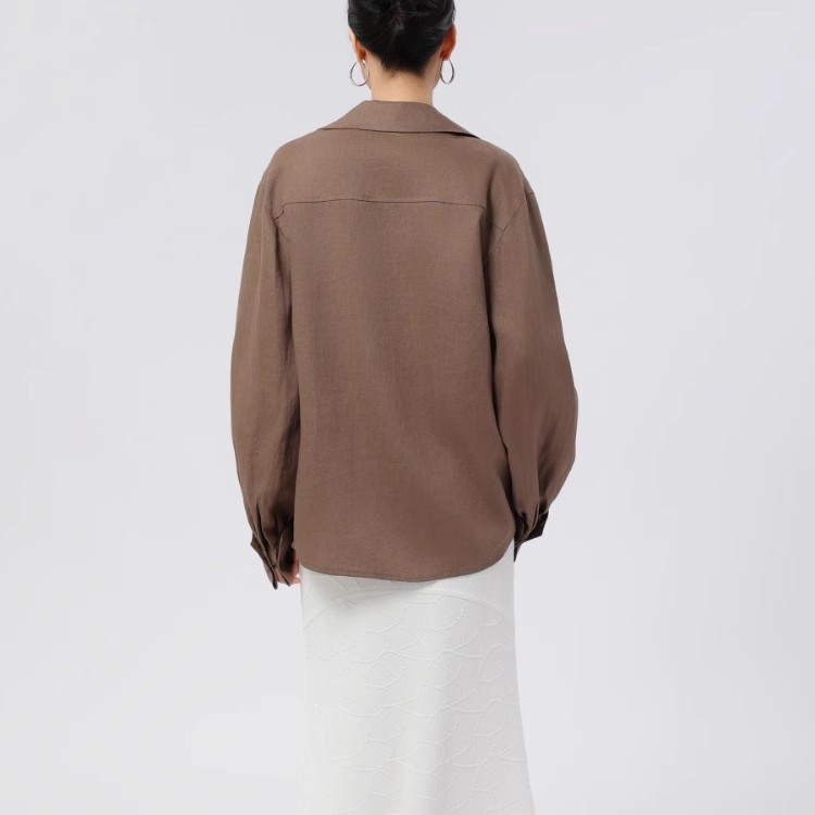 专柜商场同款阿玛施2025春夏新款宽松亚麻长袖衬衫女上衣外套休闲