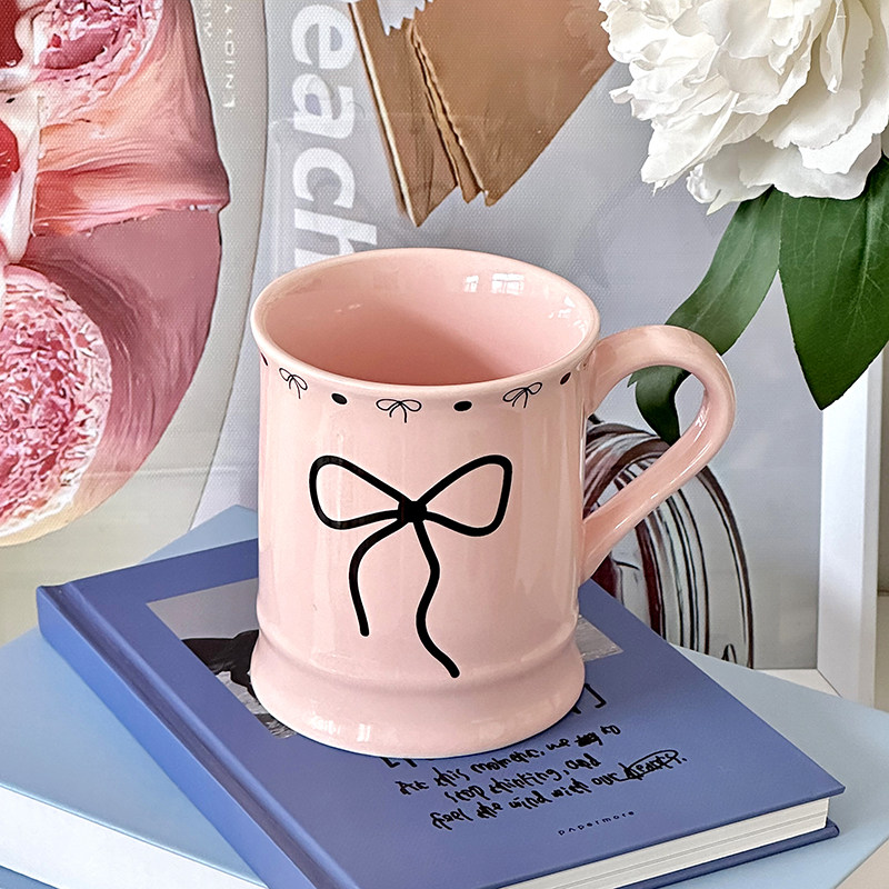 ins风蝴蝶结情侣杯马克杯陶瓷喝水杯子咖啡杯高颜值女生生日礼物