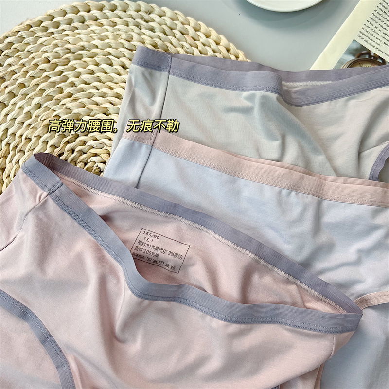 超细旦兰精莫代尔内裤女无痕纯棉抗菌简约中腰纯色女士大红三角裤